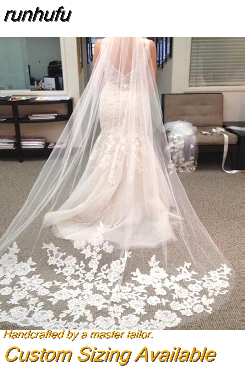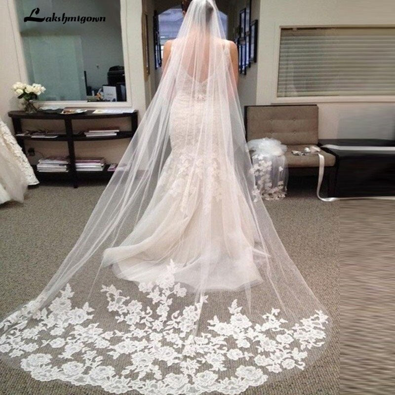 runhufu Tulle 3 Meters Long Cathedral Wedding Veils Lace Edge Bridal Veil Veu de Noiva Longo Wedding Accessories