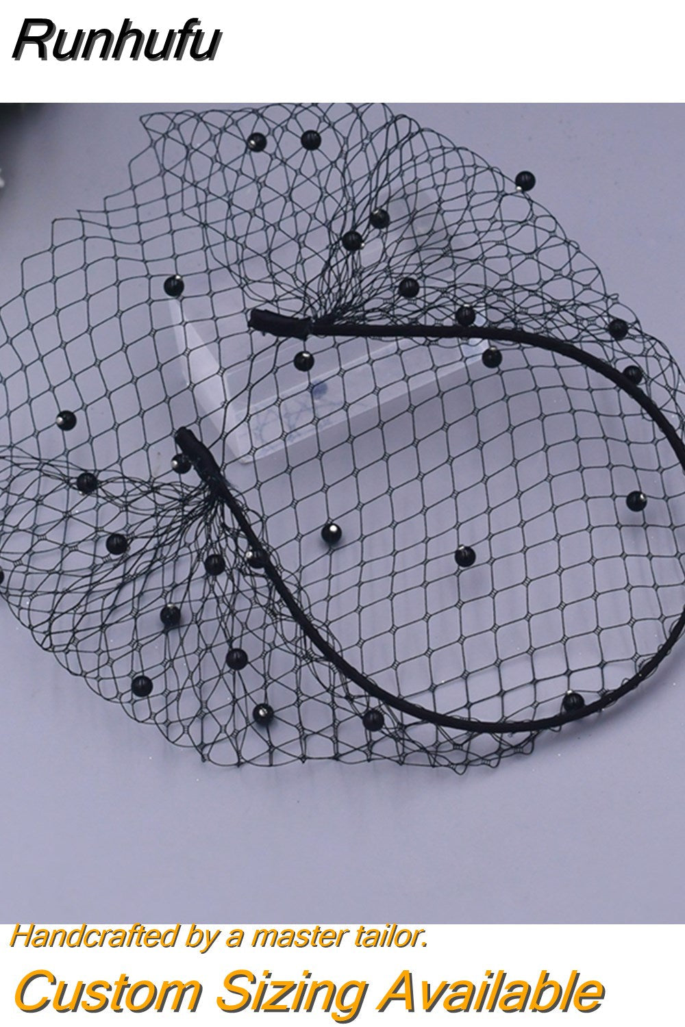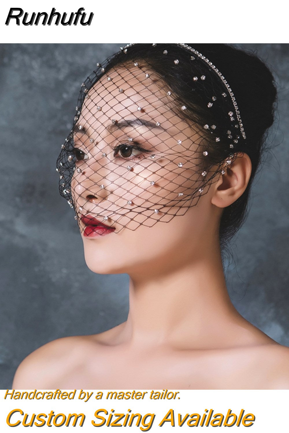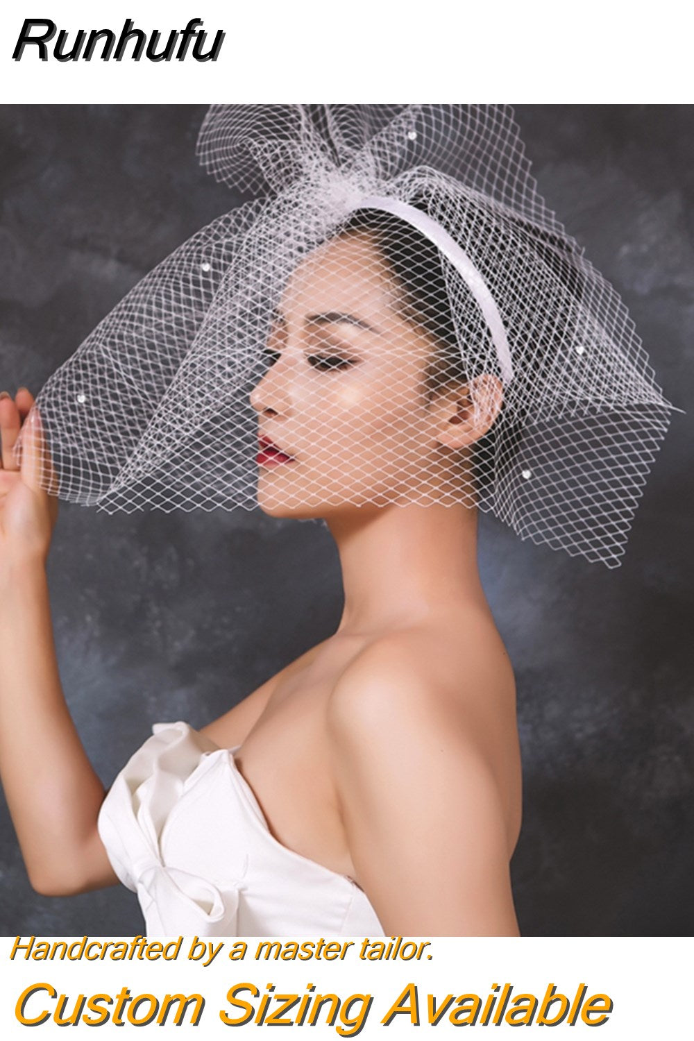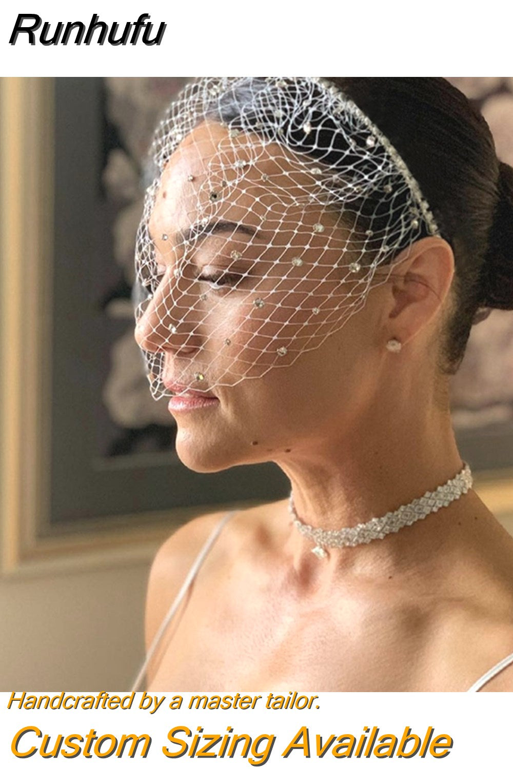 Runhufu VA06 Birdcage Veil White Black Veil Face Veil Handband Bridal Veils with Crystal Blusher Veil Wedding Party Accesories