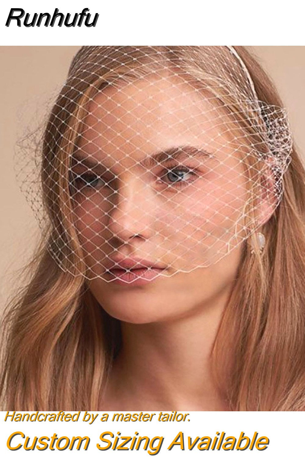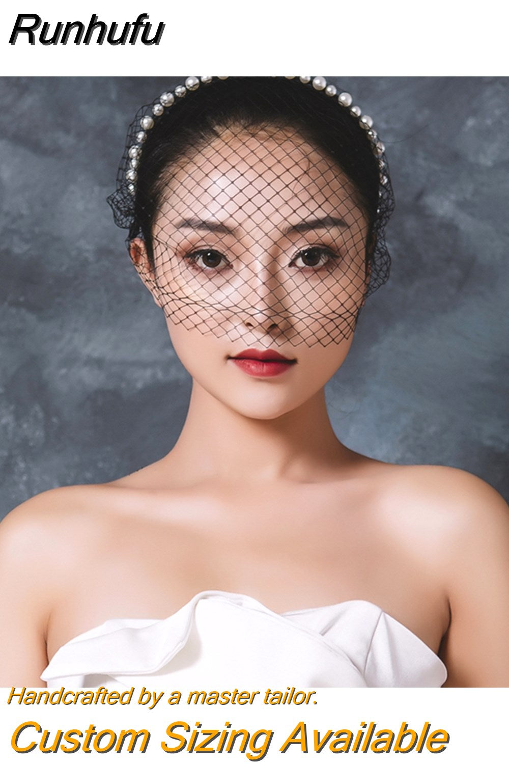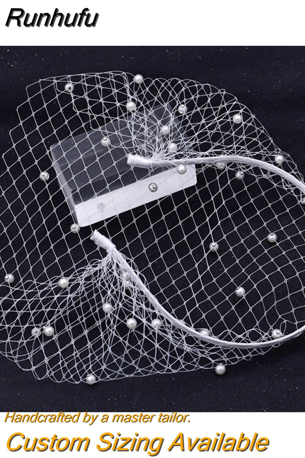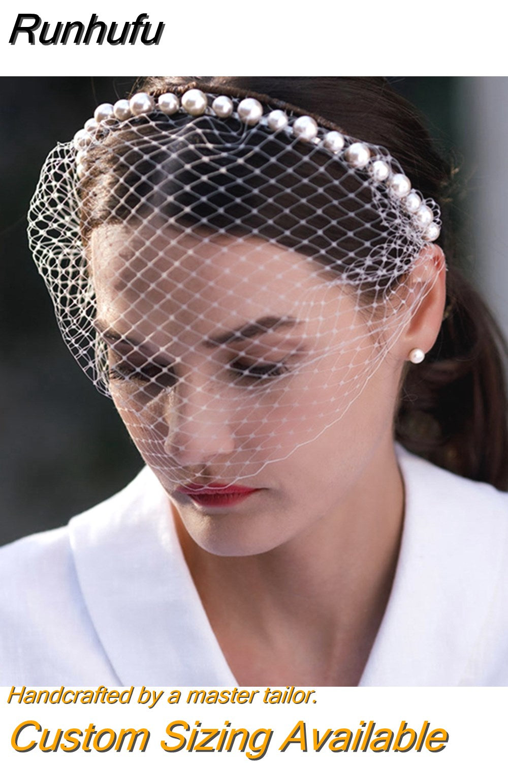 Runhufu VA06 Birdcage Veil White Black Veil Face Veil Handband Bridal Veils with Crystal Blusher Veil Wedding Party Accesories