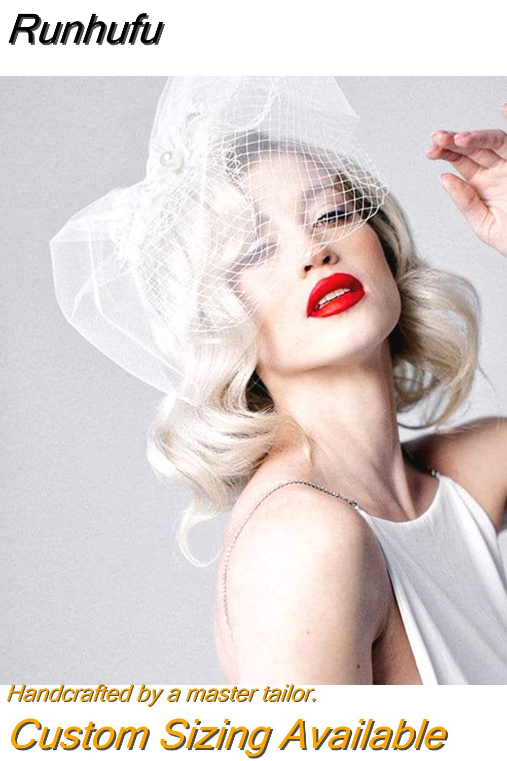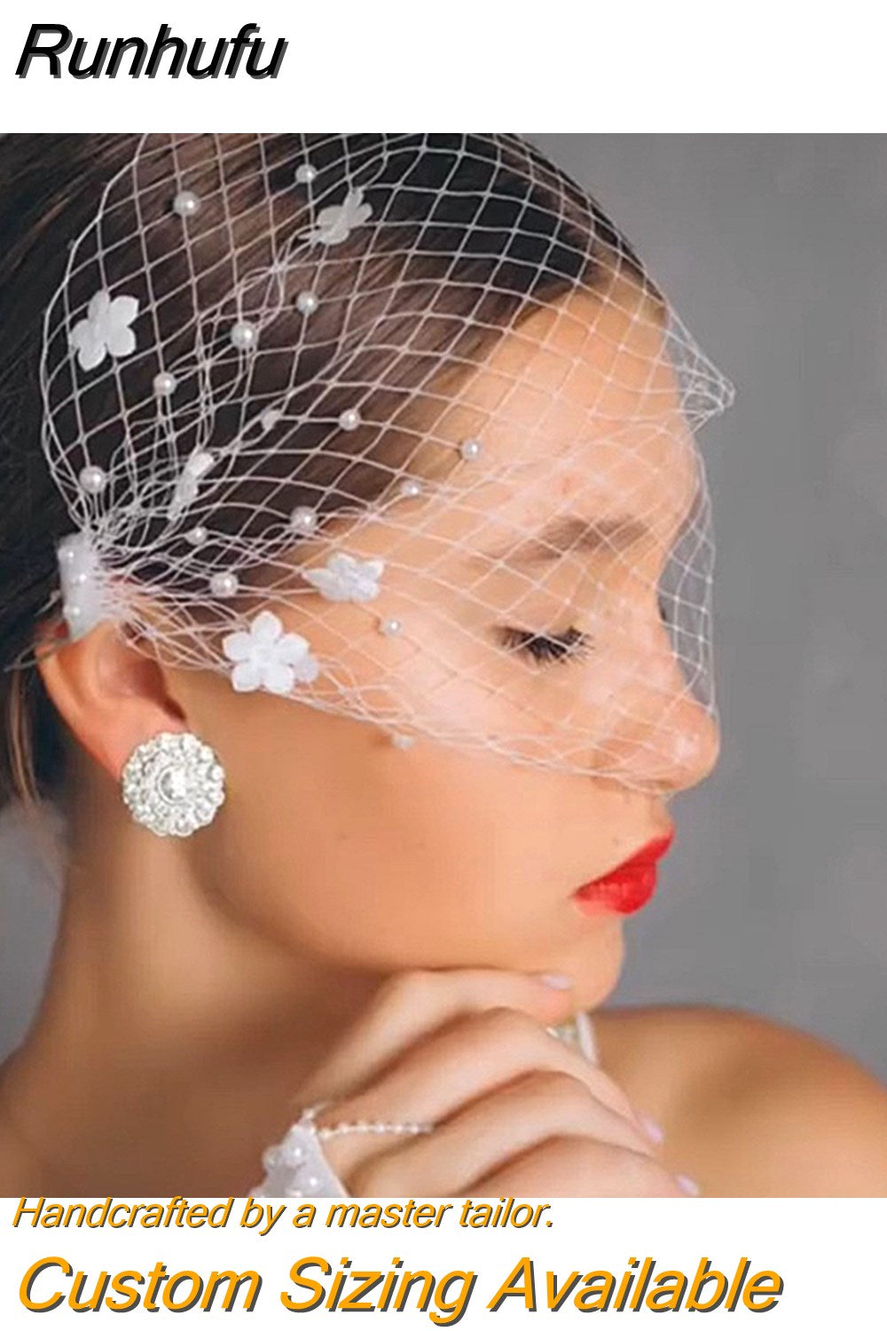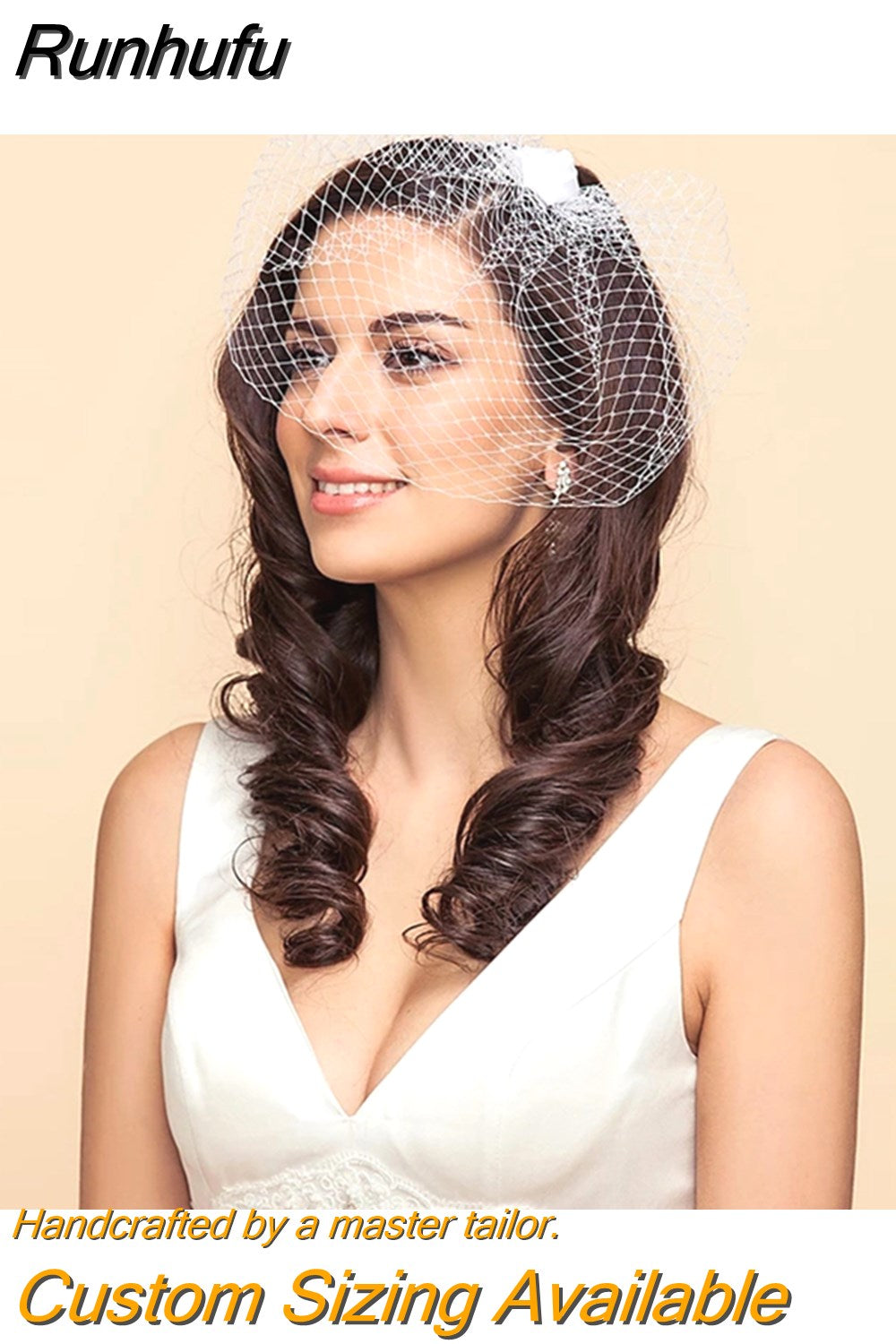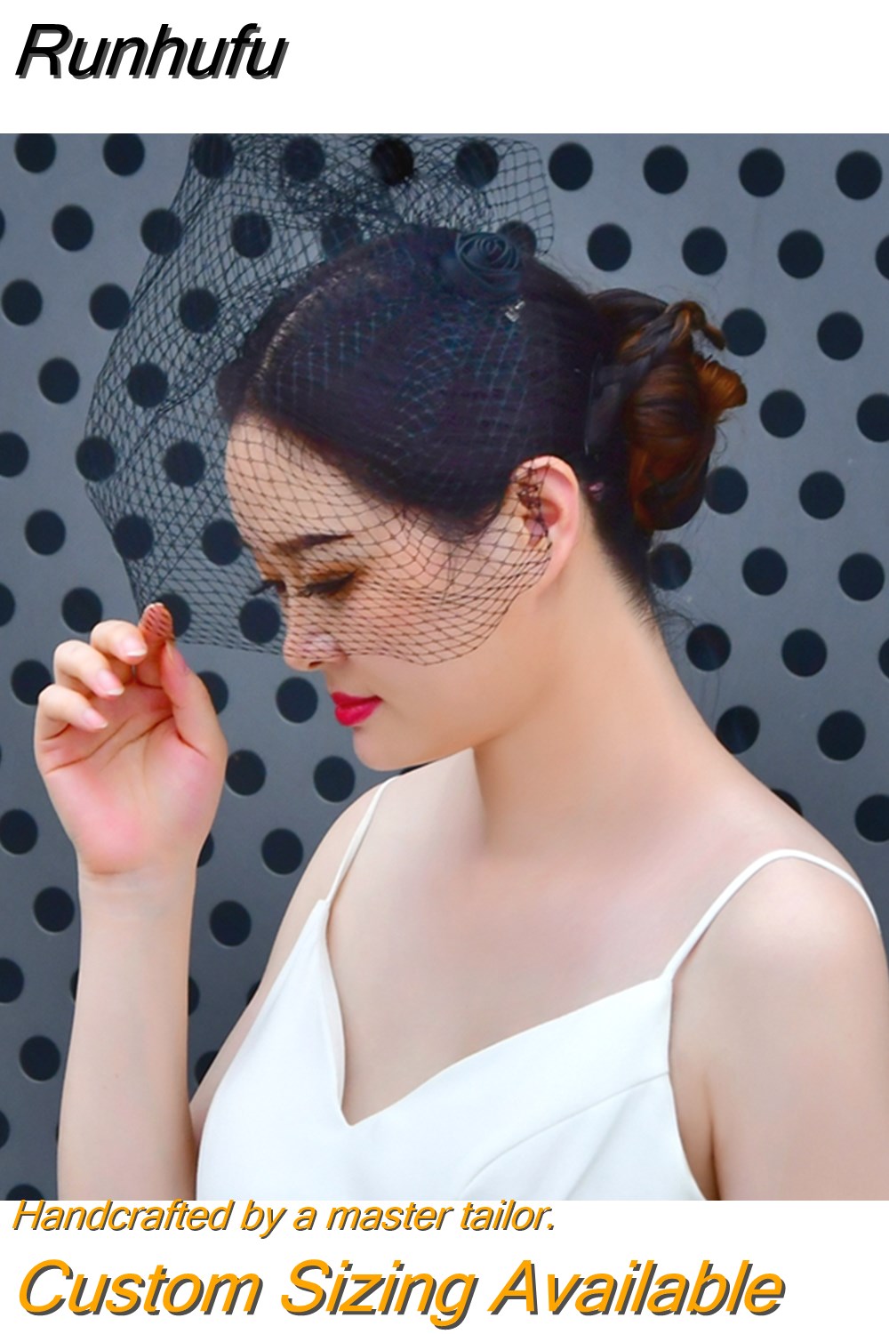 Runhufu VA06 Birdcage Veil White Black Veil Face Veil Handband Bridal Veils with Crystal Blusher Veil Wedding Party Accesories