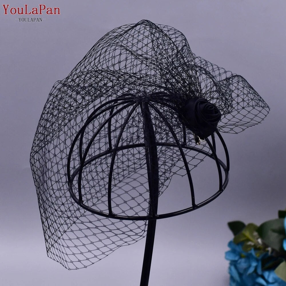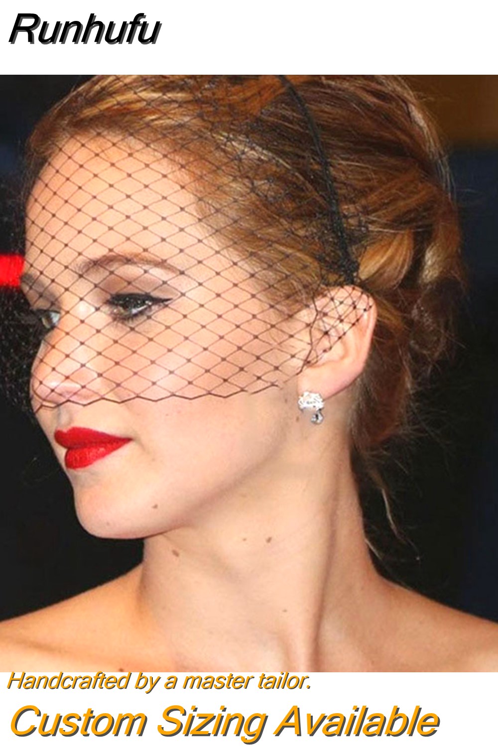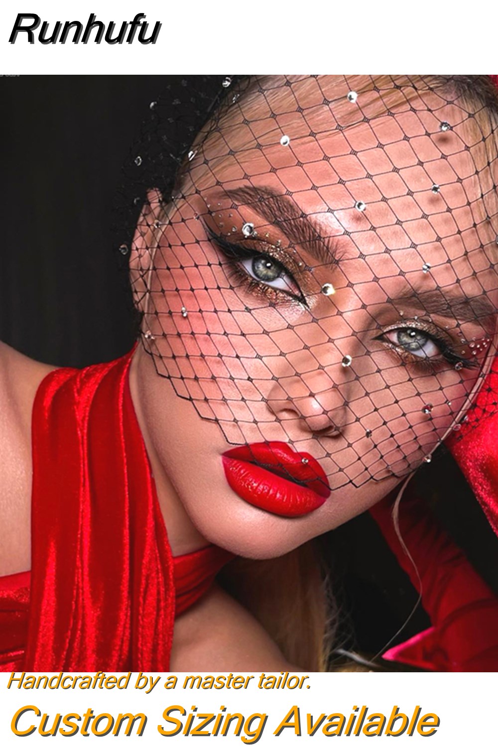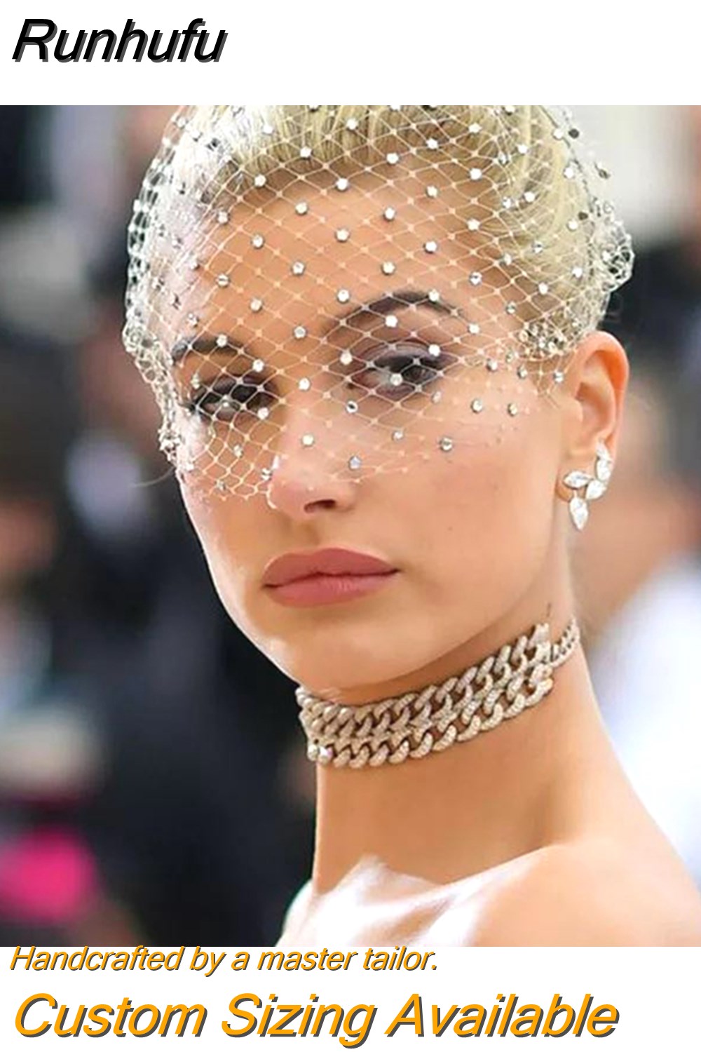 Runhufu VA06 Birdcage Veil White Black Veil Face Veil Handband Bridal Veils with Crystal Blusher Veil Wedding Party Accesories