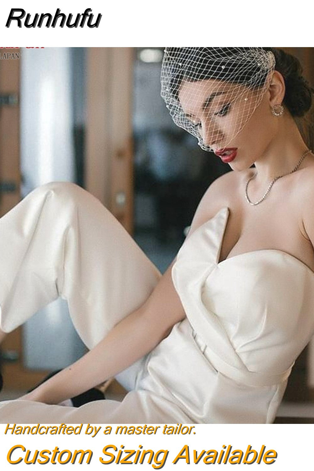 Runhufu Long Sleeves Lace Mermaid Wedding Dress For Bride Satin Bridal Gowns Elegant Plus Size Custom Made Vestido De Novia 2023