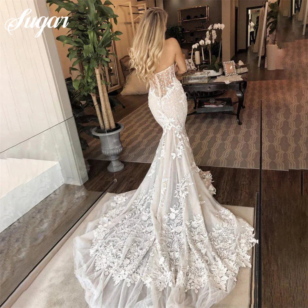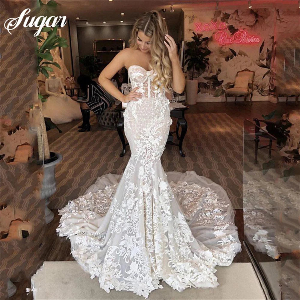 Runhufu NICEB Mermaid Wedding Dress Pearls Beaded Lace Bridal Gowns For Bride Brazil Appliques Vestido De Novia Custom Made