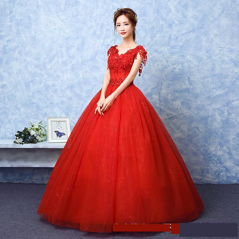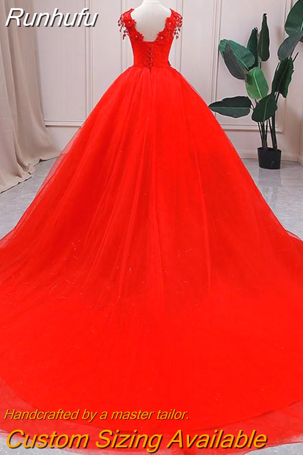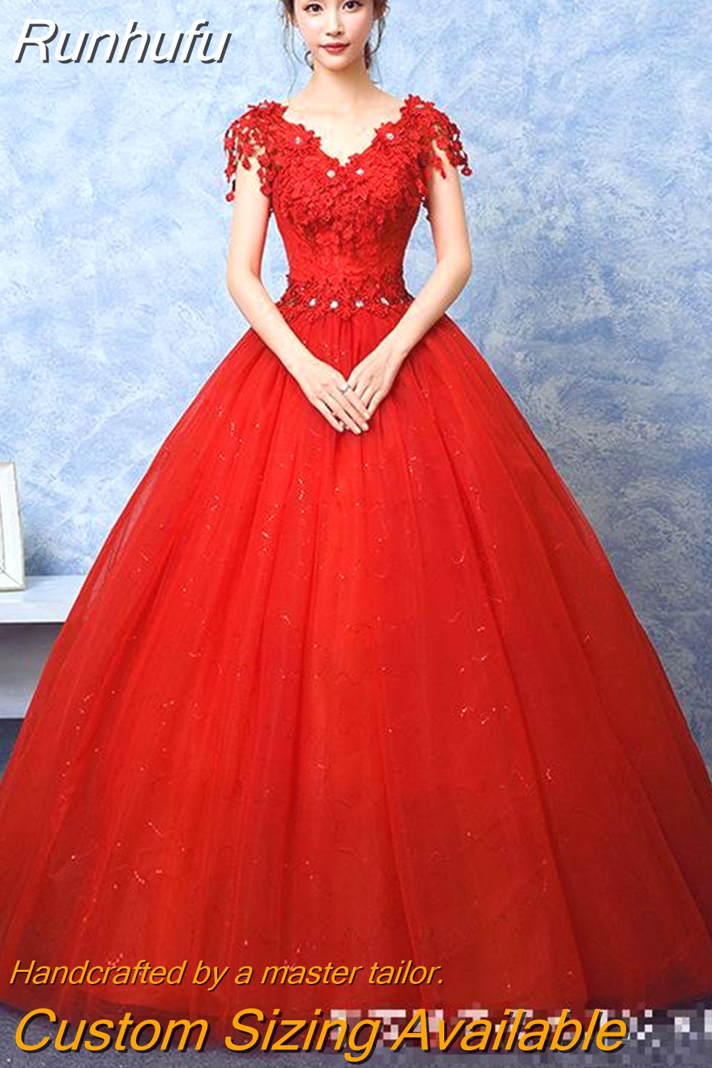 Runhufu Wedding Dress The Red V-neck Ball Gown Vintage Wedding Dresses Lace Embroidery Vestido De Noiva