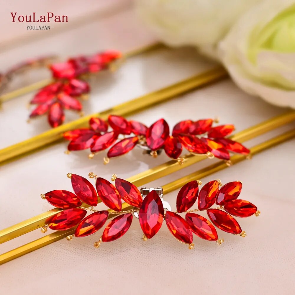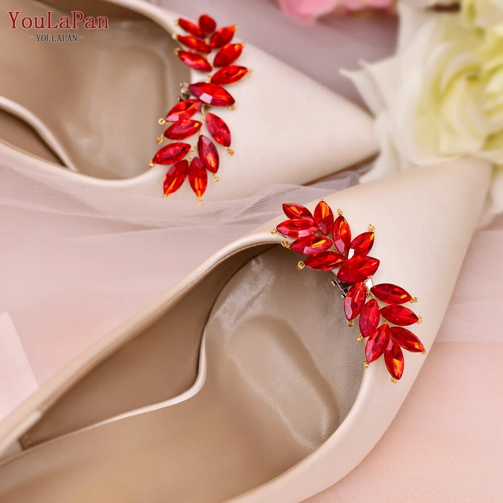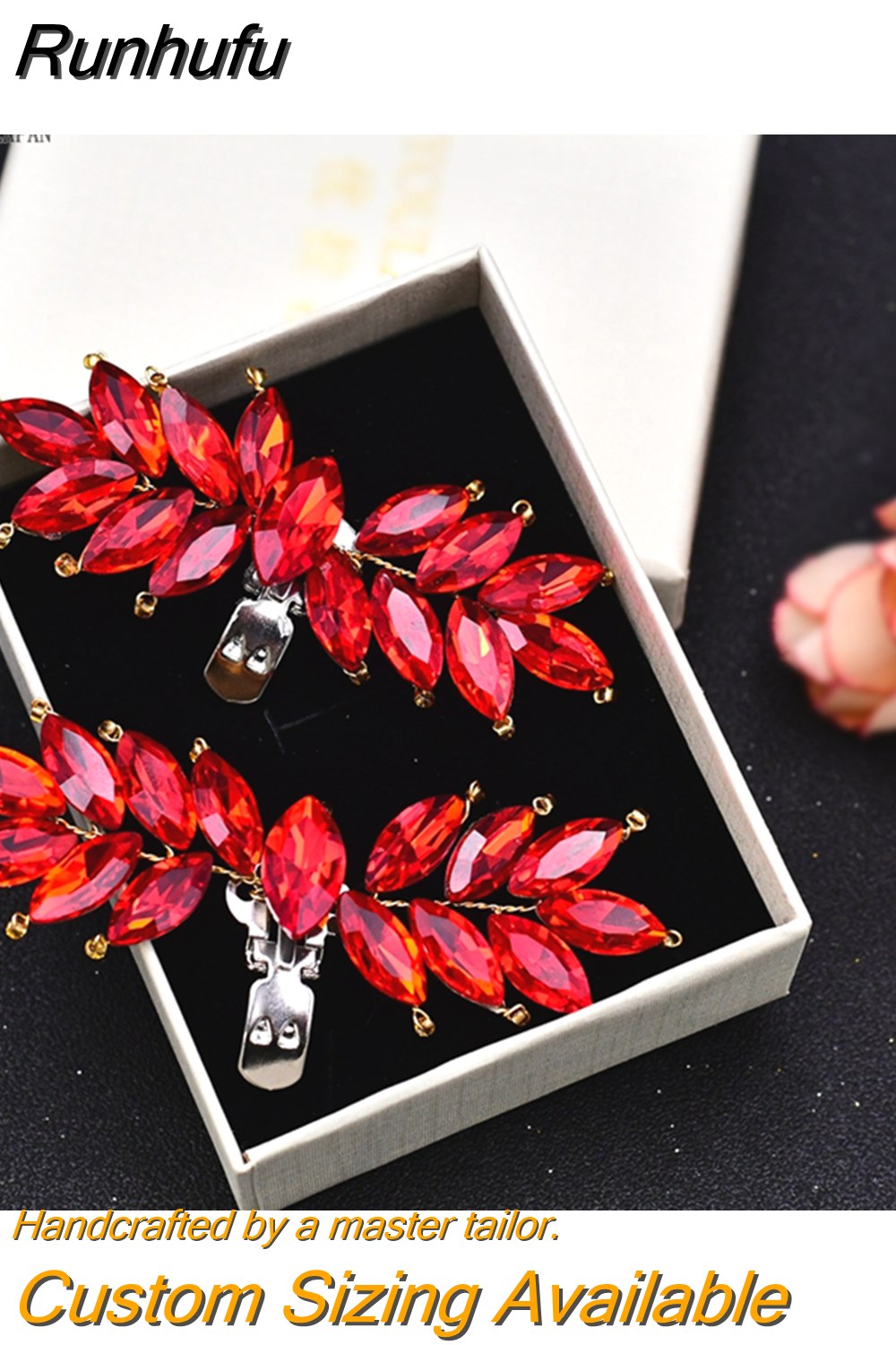 Runhufu X31 Red Rhinestone Shoes Clips Bridal High Heel Shoe Ornaments Jewelry Wedding Shoes Decoration Clip DIY Accessories