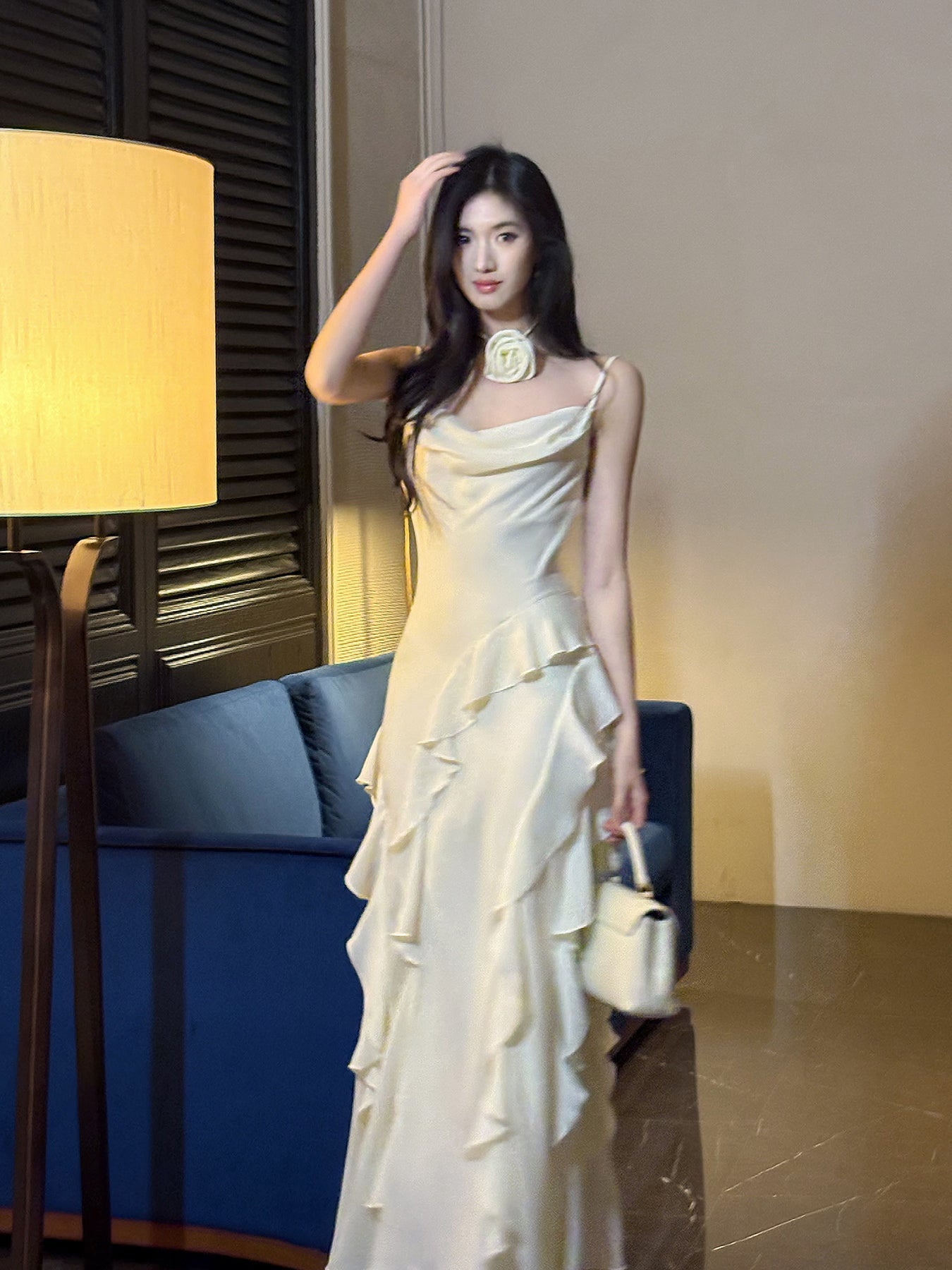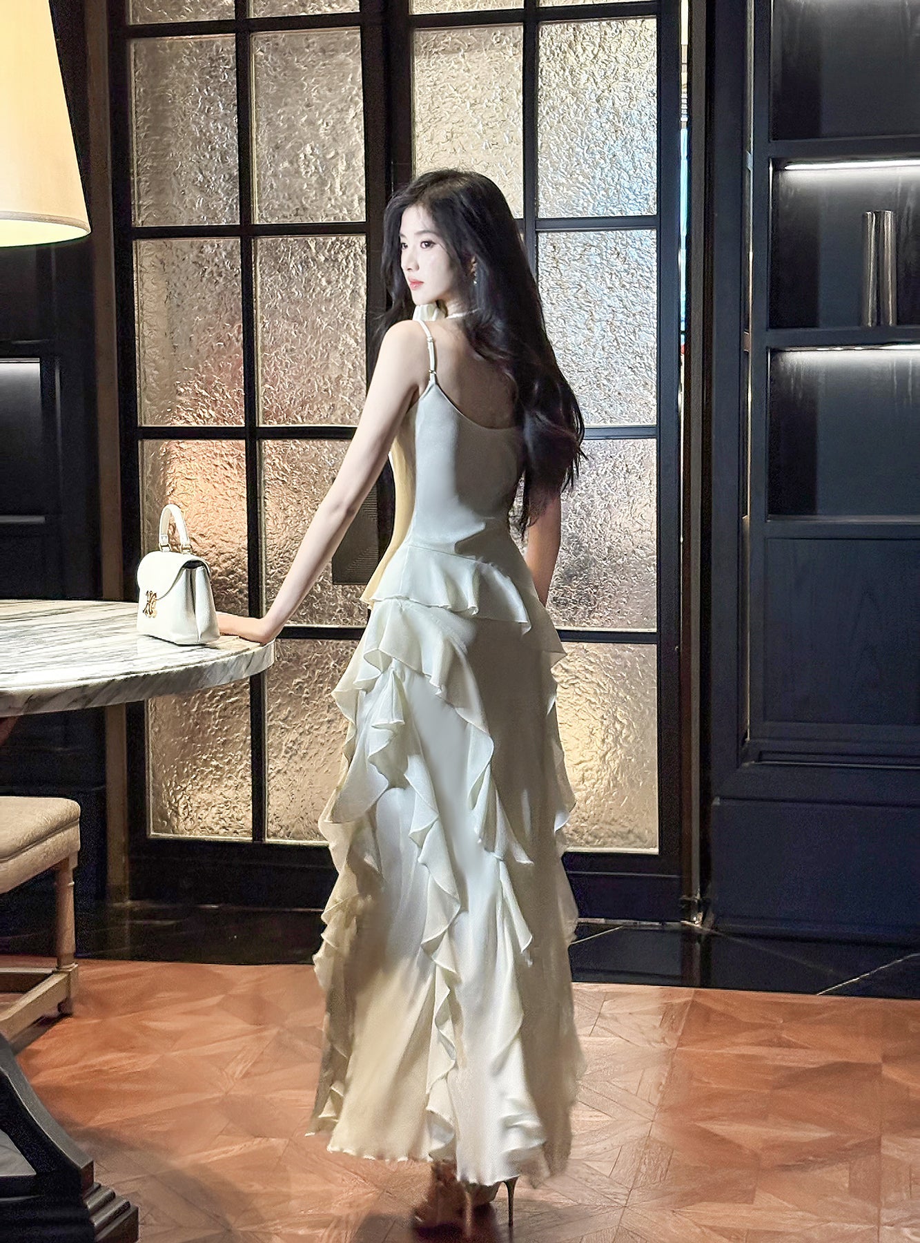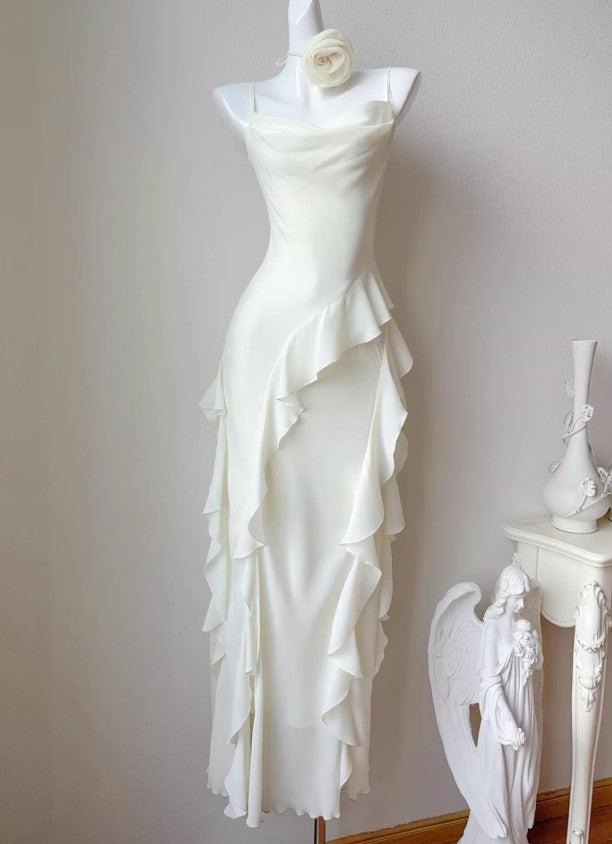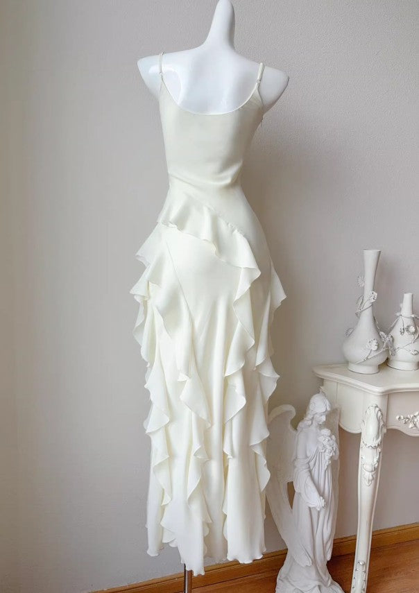 Sweet Birthday Evening Gowns Off-White Spaghetti Straps Chiffon Ruffles A-Line Prom Dresses HZ1108