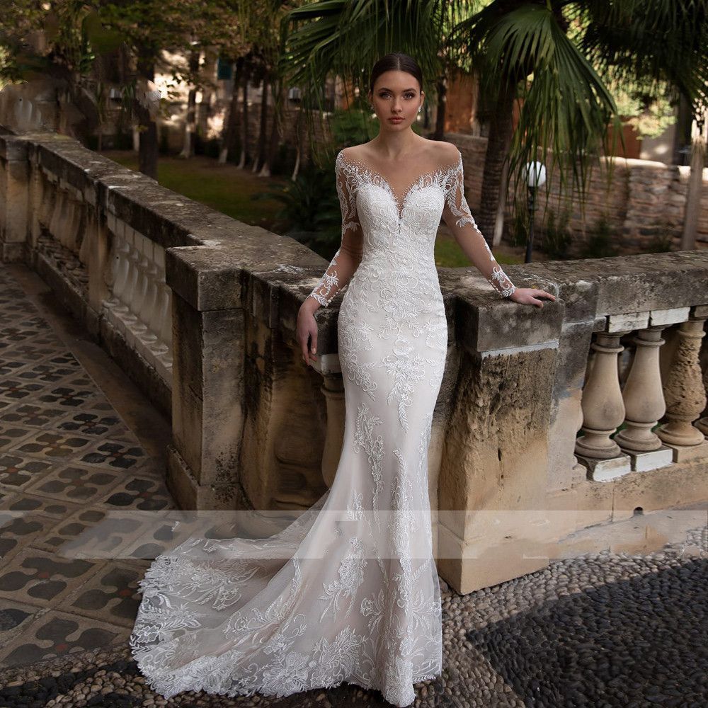 Runhufu Long Sleeves Lace Mermaid Wedding Dress For Bride Satin Bridal Gowns Elegant Plus Size Custom Made Vestido De Novia 2023