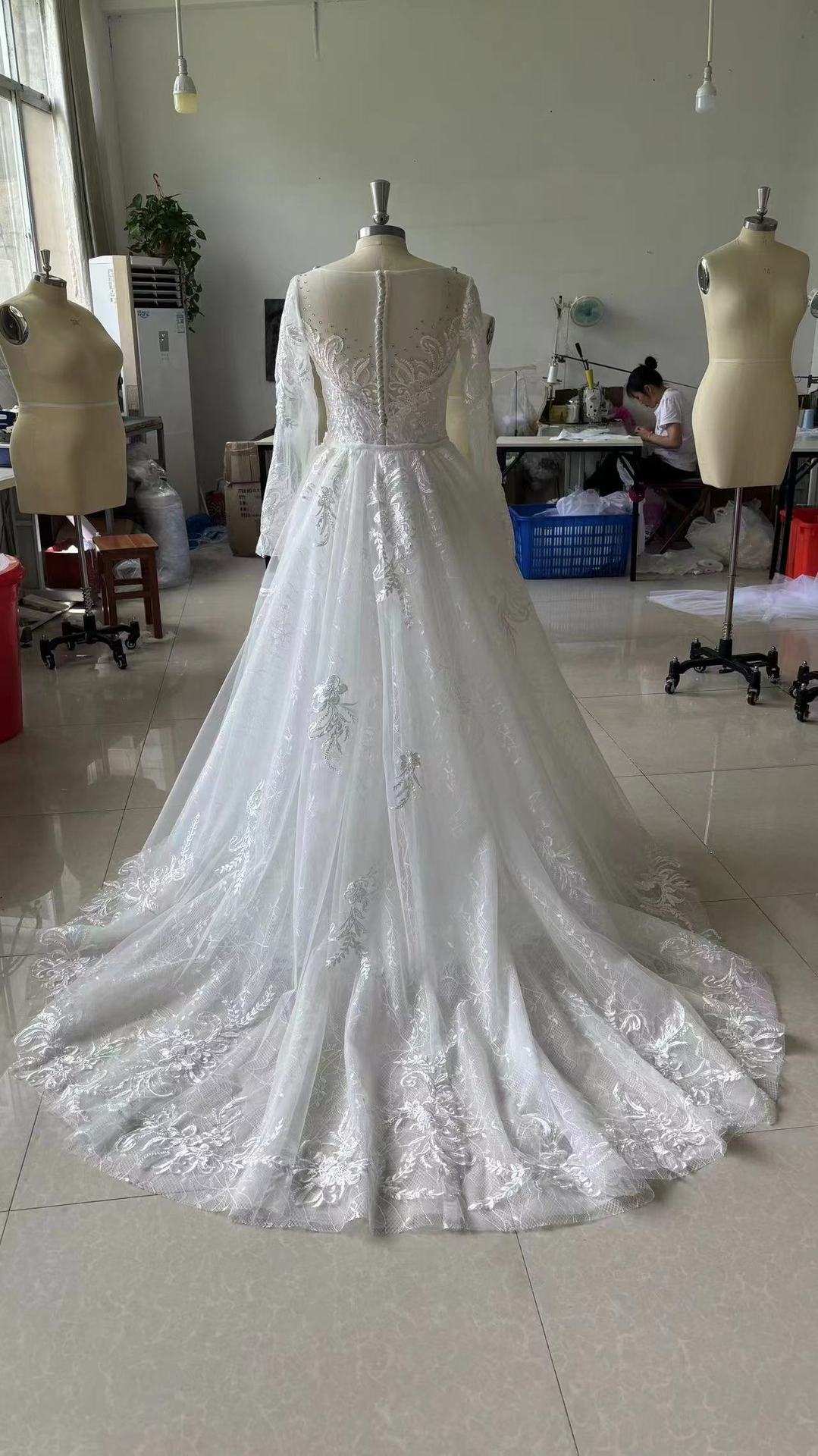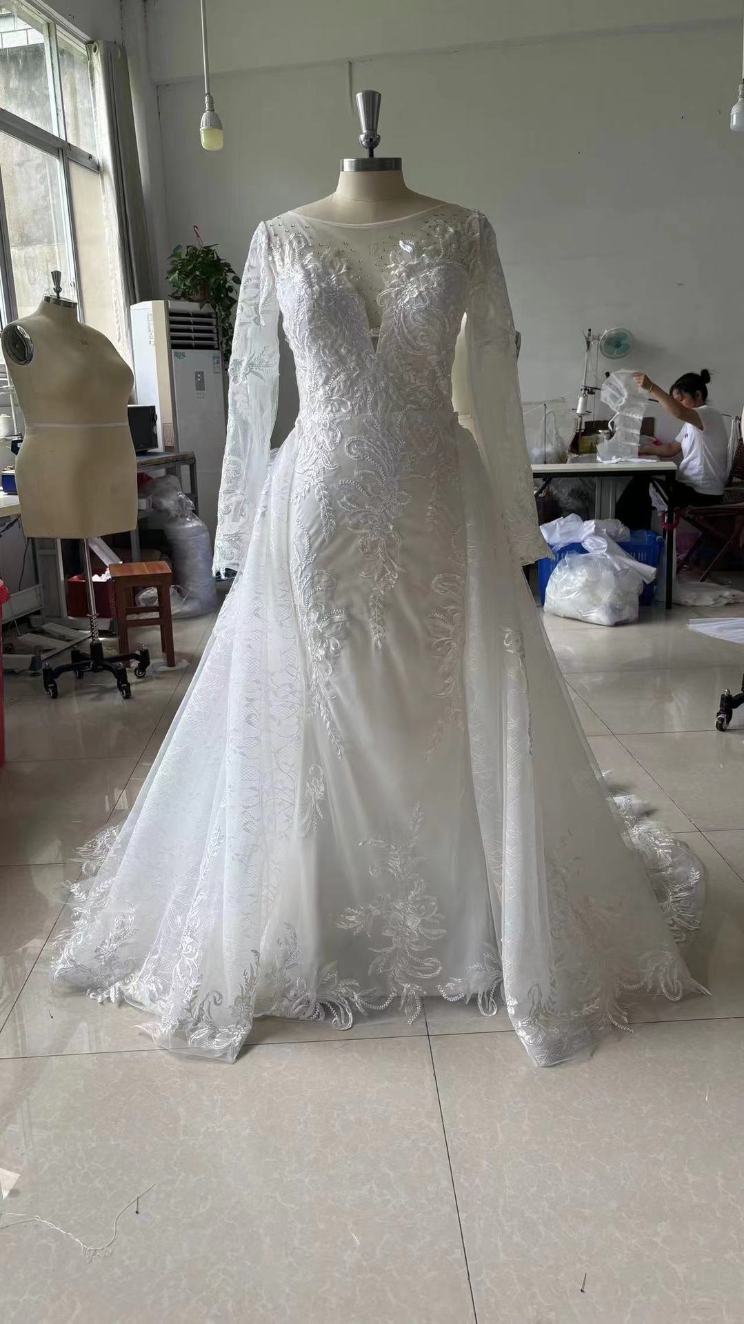 Wedding Dress 2025 Spring And Summer Long Sleeves With Tail Tug-And-Tailed Retro Showing Thin Sleeve Dress Dress