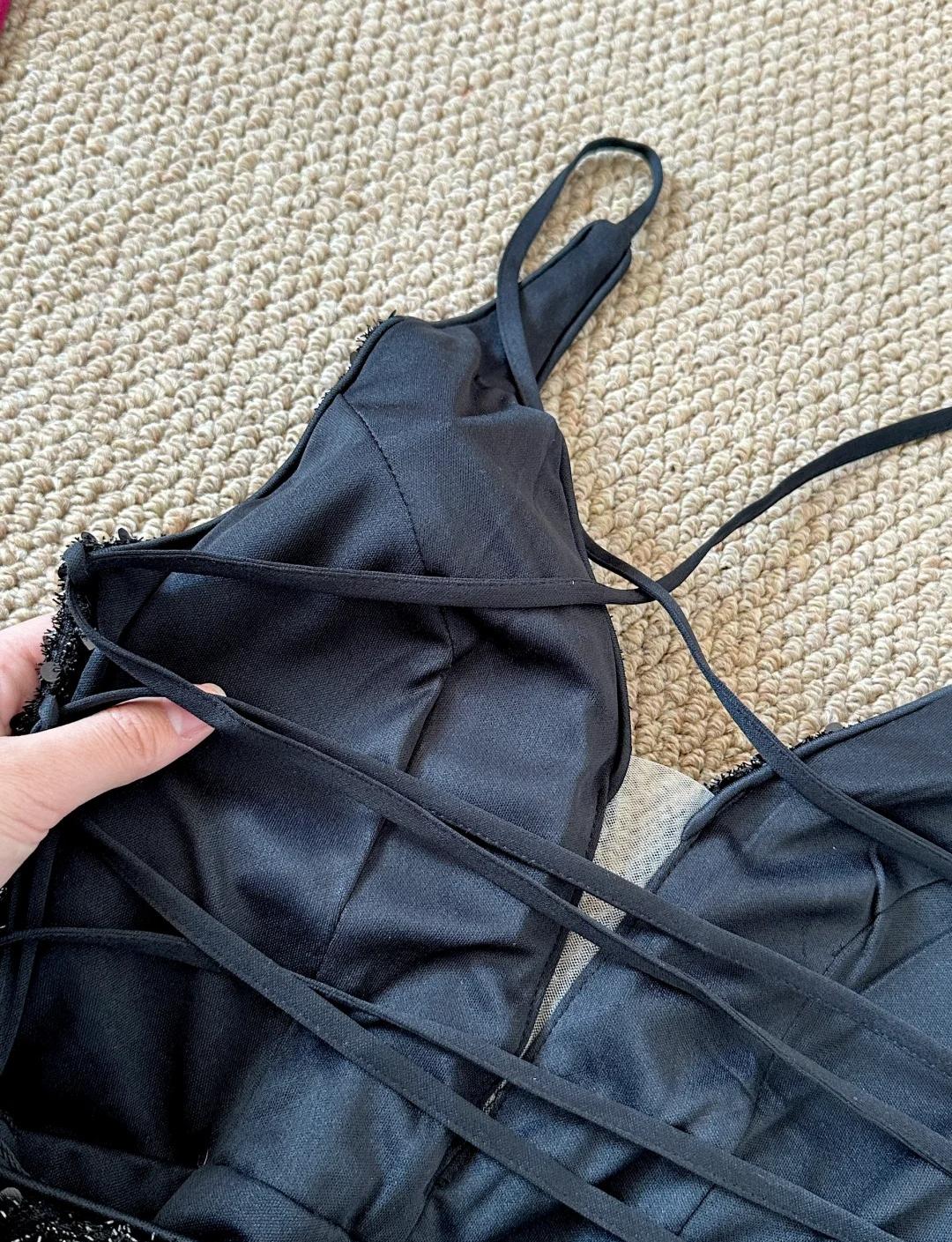 Gorgeous Black Sequin Mermaid Spaghetti Strap Vling Long Prom Dress Backless Formal Evening Dress HZ1108
