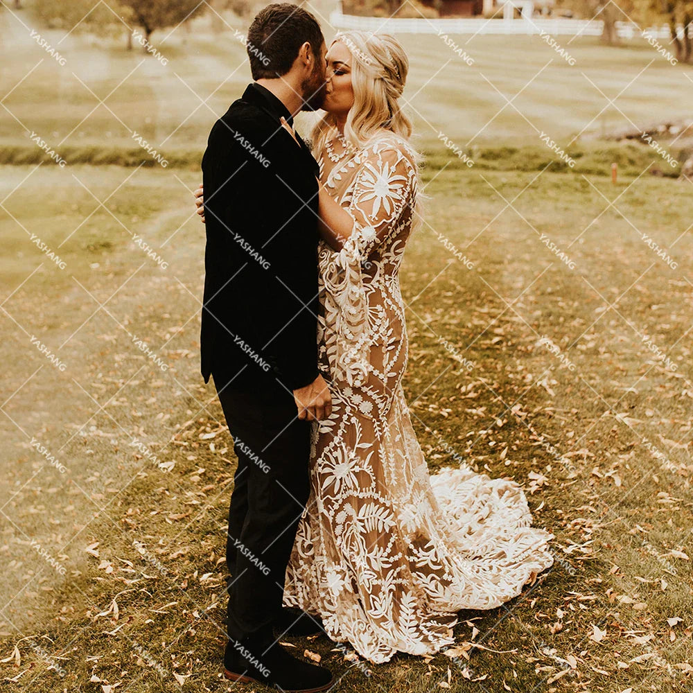 Runhufu Long Sleeves Lace Mermaid Wedding Dress For Bride Satin Bridal Gowns Elegant Plus Size Custom Made Vestido De Novia 2023