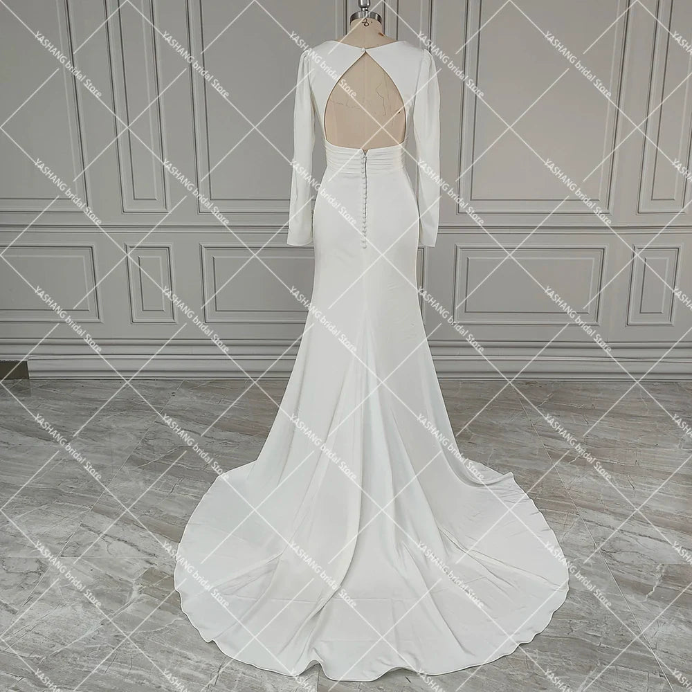 Runhufu Long Sleeves Lace Mermaid Wedding Dress For Bride Satin Bridal Gowns Elegant Plus Size Custom Made Vestido De Novia 2023