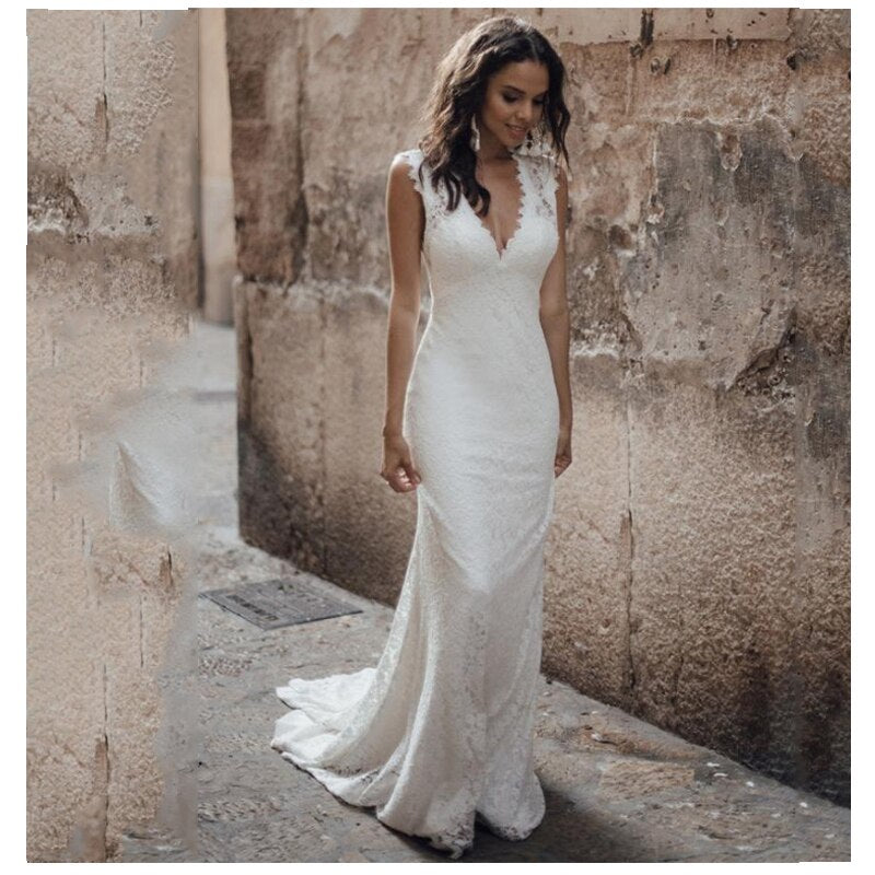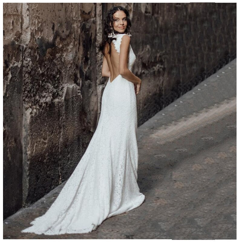 Runhufu Wedding Dress 2023 V Neck Lace Sexy Boho Bridal Dresses Custom Made Backless Mermaid Wedding Gowns Vestidos de novia