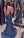 Elegant Blue Pleated Mermaid Satin Open Back Prom Dress Birthday Dress HZ1108