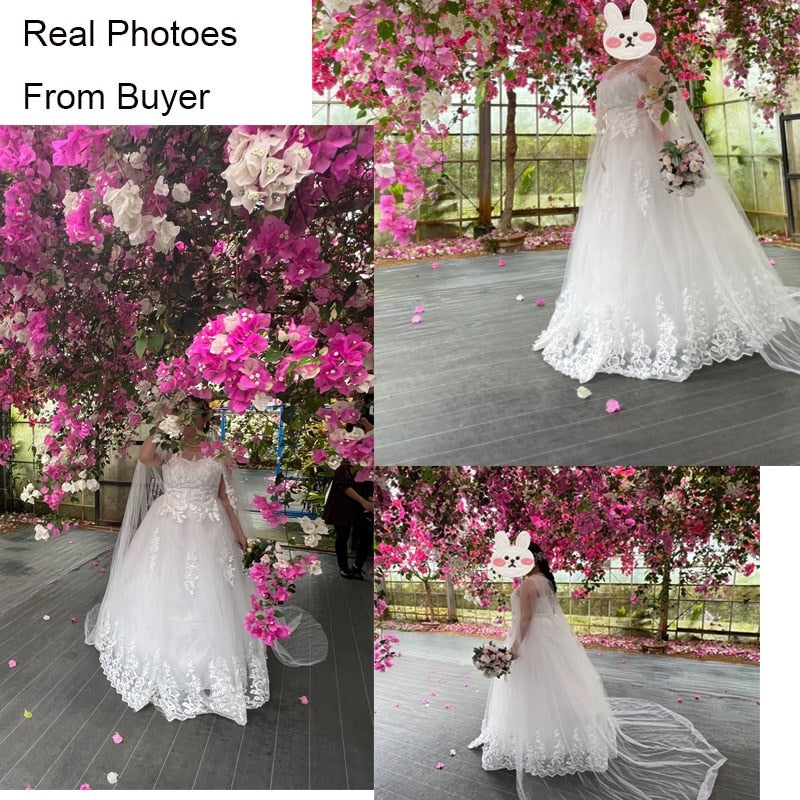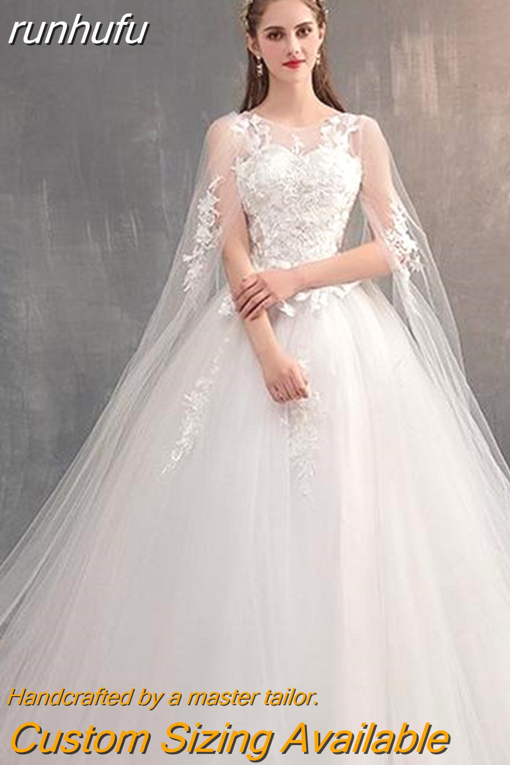 runhufu Chinese Wedding Dress With Long Cap Lace Wedding Gown With Long Train Embroidery Princess Plus Szie Bridal Dress