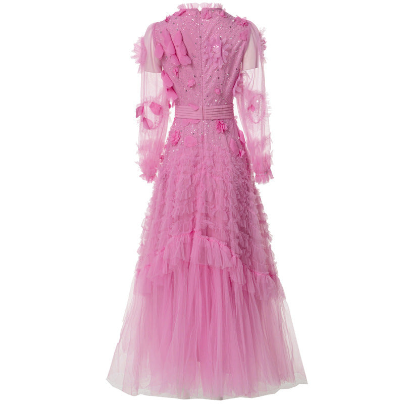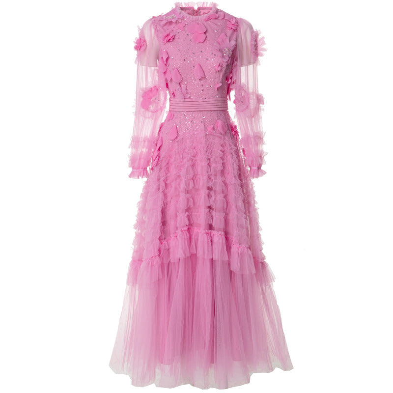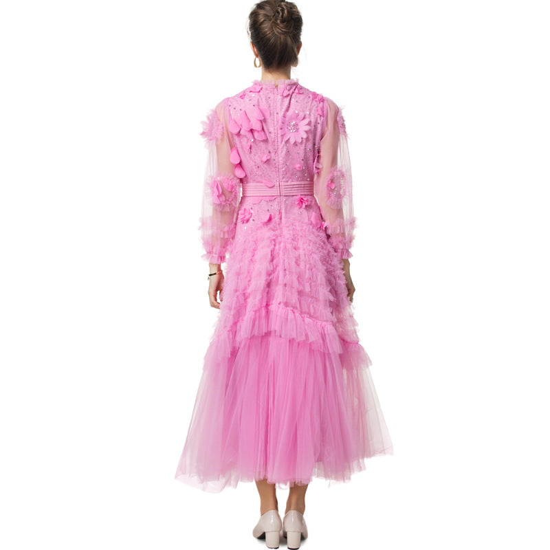 runhufu Industry Lien Clams Nail Pearl Three-Dimensional Flower Pink Round-Necked Princess Dress Dress Dress Famous Spring And Summer Woman 2025