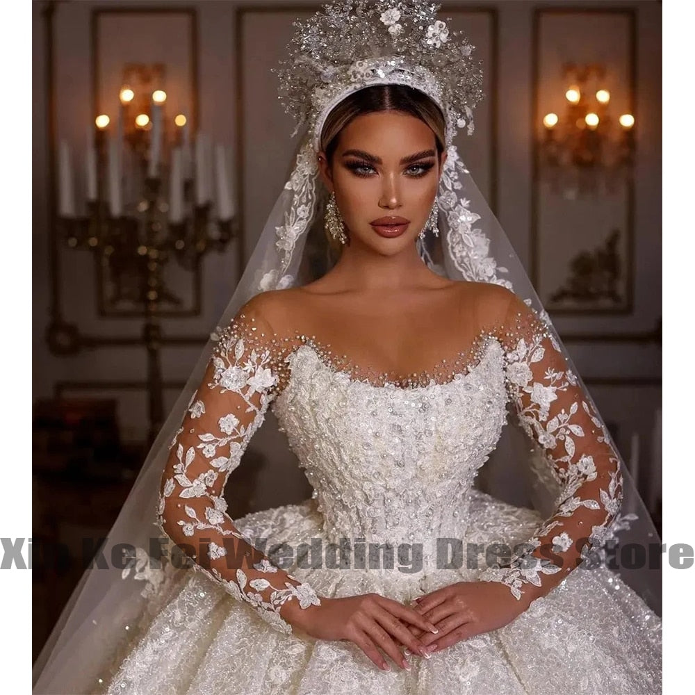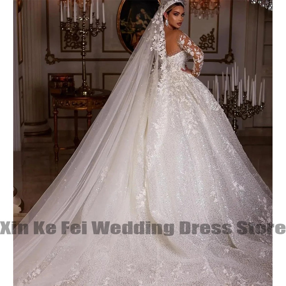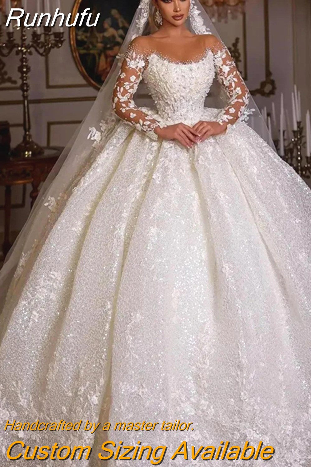 Runhufu Lace Women's Wedding Dresses Long Sleeve Sparkling Princess Bridal Gowns A-Line Decal Formal Beach Party 2023 Robe Mariée