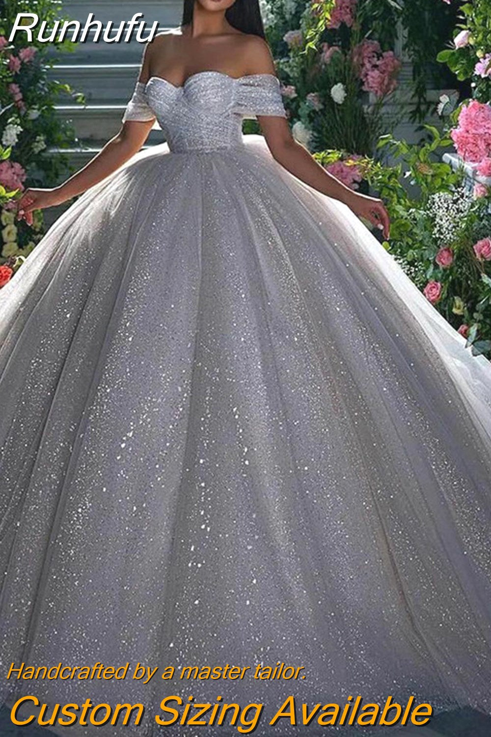 Runhufu Princess Wedding Dress Ladies Glitter Tulle Sweetheart Bridal Dress Robe De Mariee Off Shoulder Arab Dubai فستان Mariée