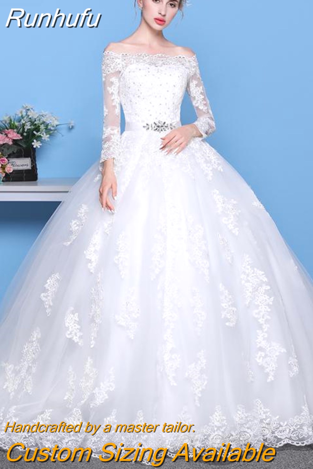 Runhufu Sleeves Wedding Dresses 2023 Princess Lace Bridal Bride Gowns Luxury Vintage Off The Shoulder Robe De Mariage