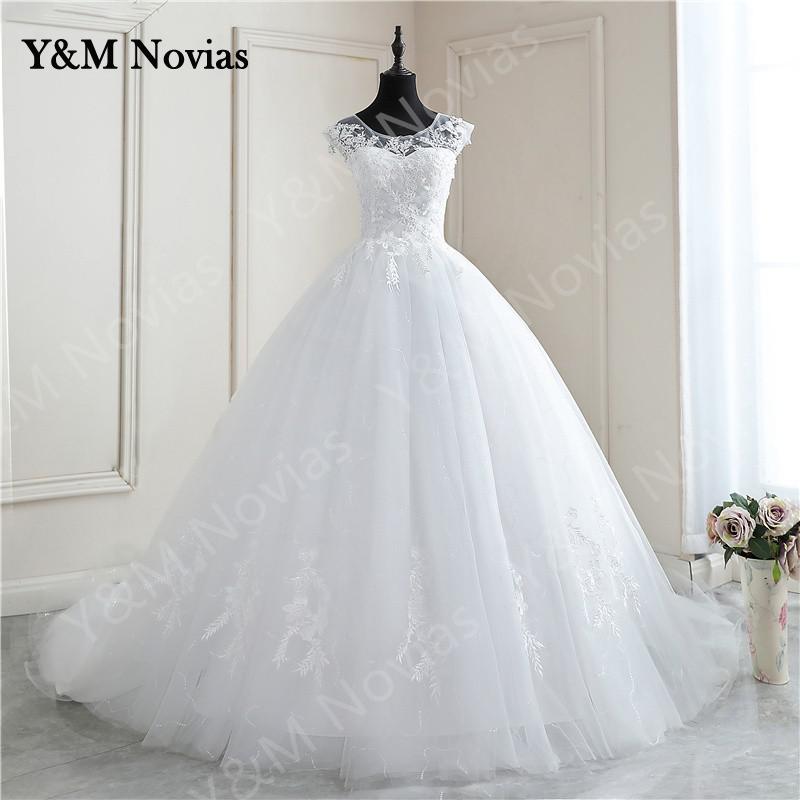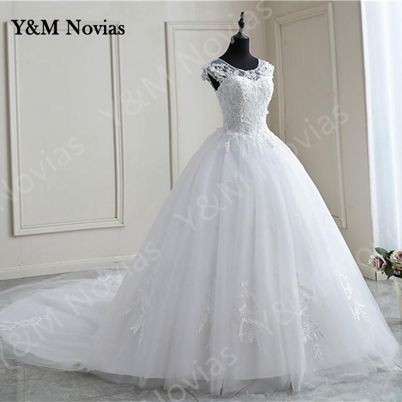 runhufu Spring Lace Appliques Pearls Wedding Dresses Sleeveless Vestidos De Novia White O-neck Princess Bride Wedding Gown Plus Size