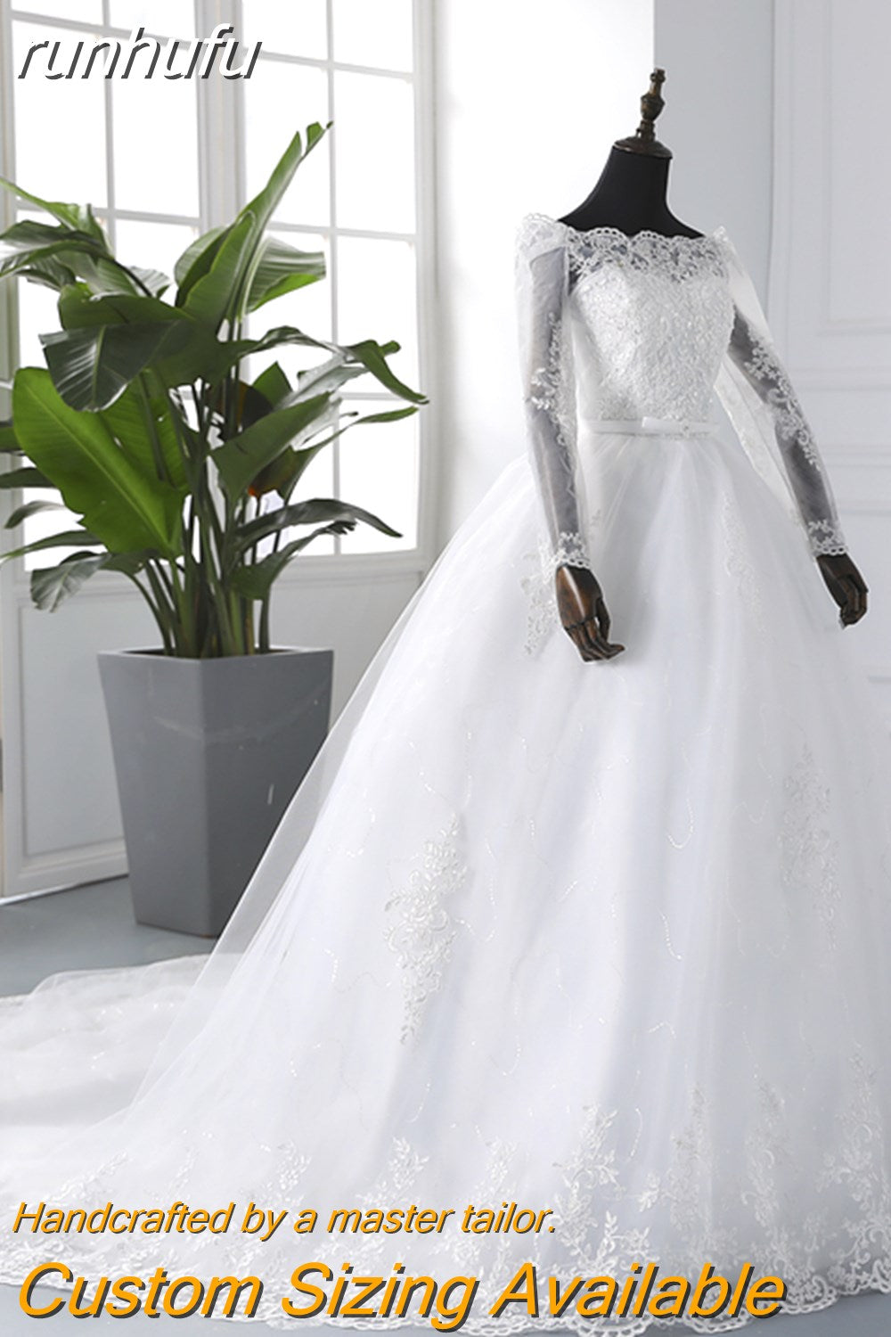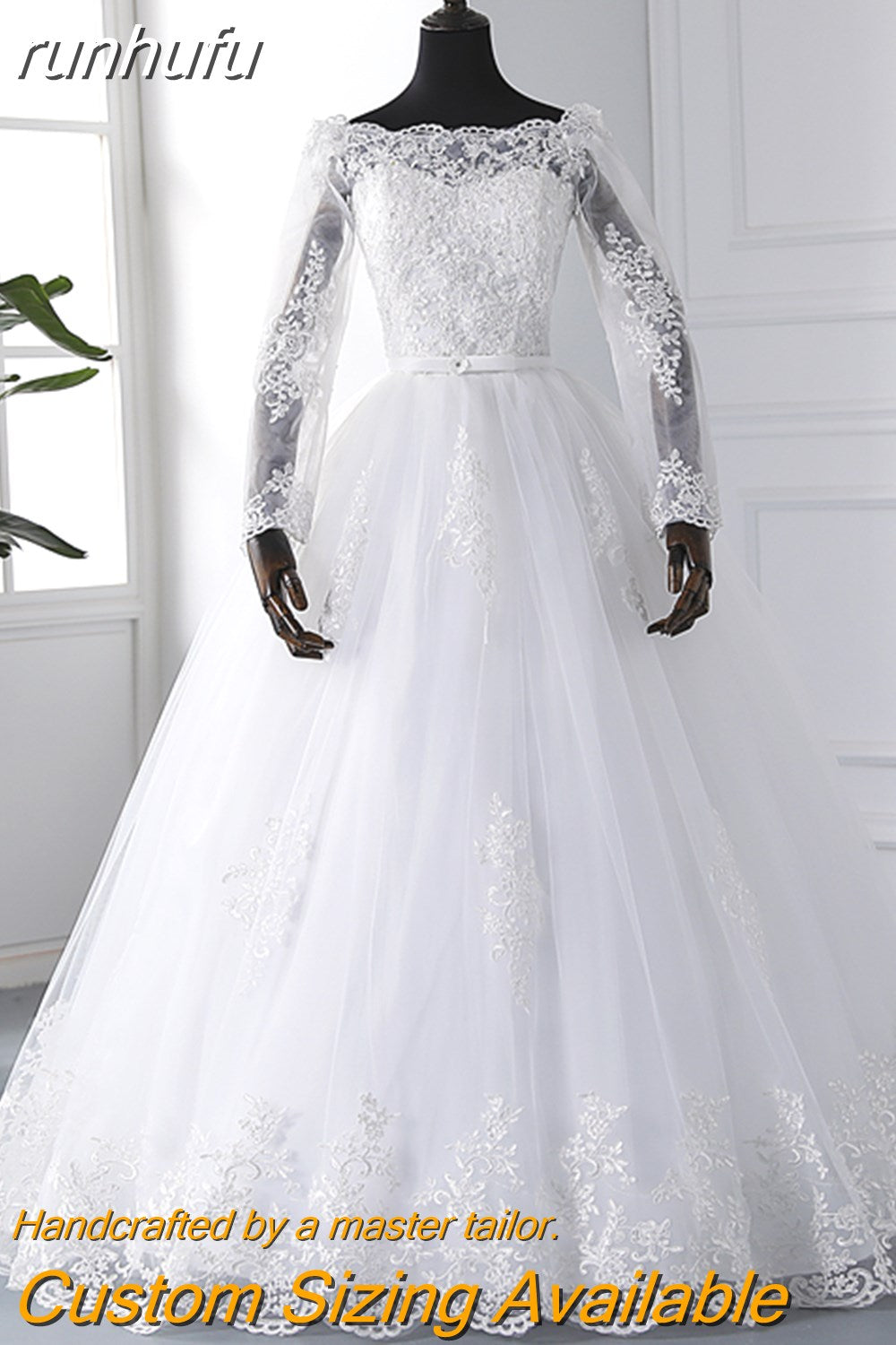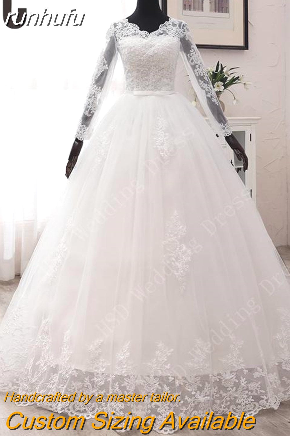 runhufu Spring Lace Appliques Wedding Dresses Long Sleeve Vestidos De Novia 2023 White V-Neck Princess Bride Wedding Gowns Plus Size