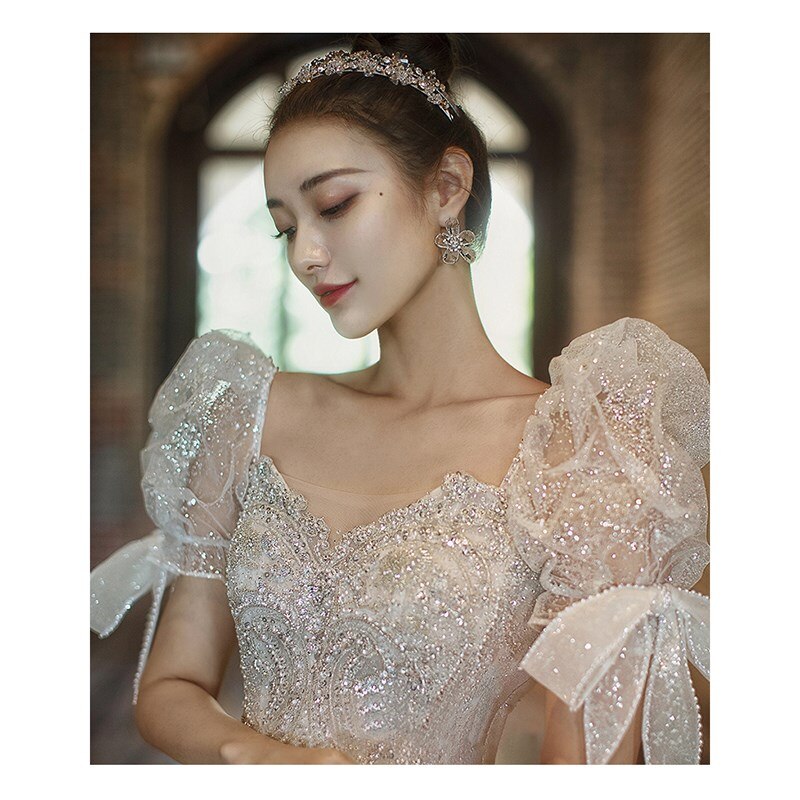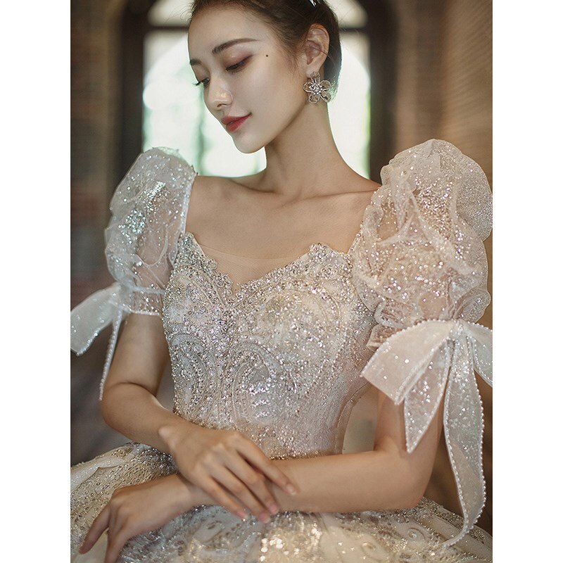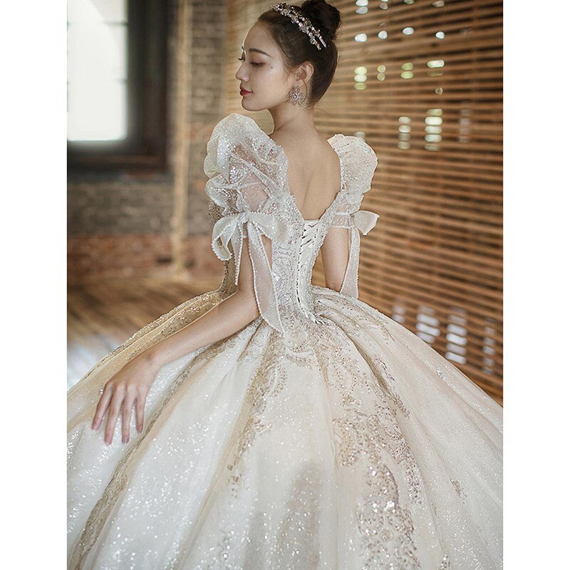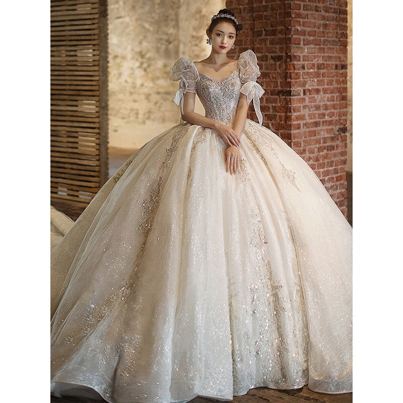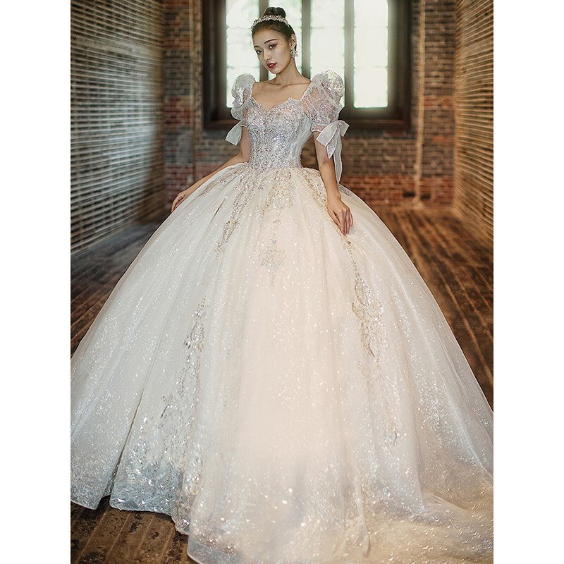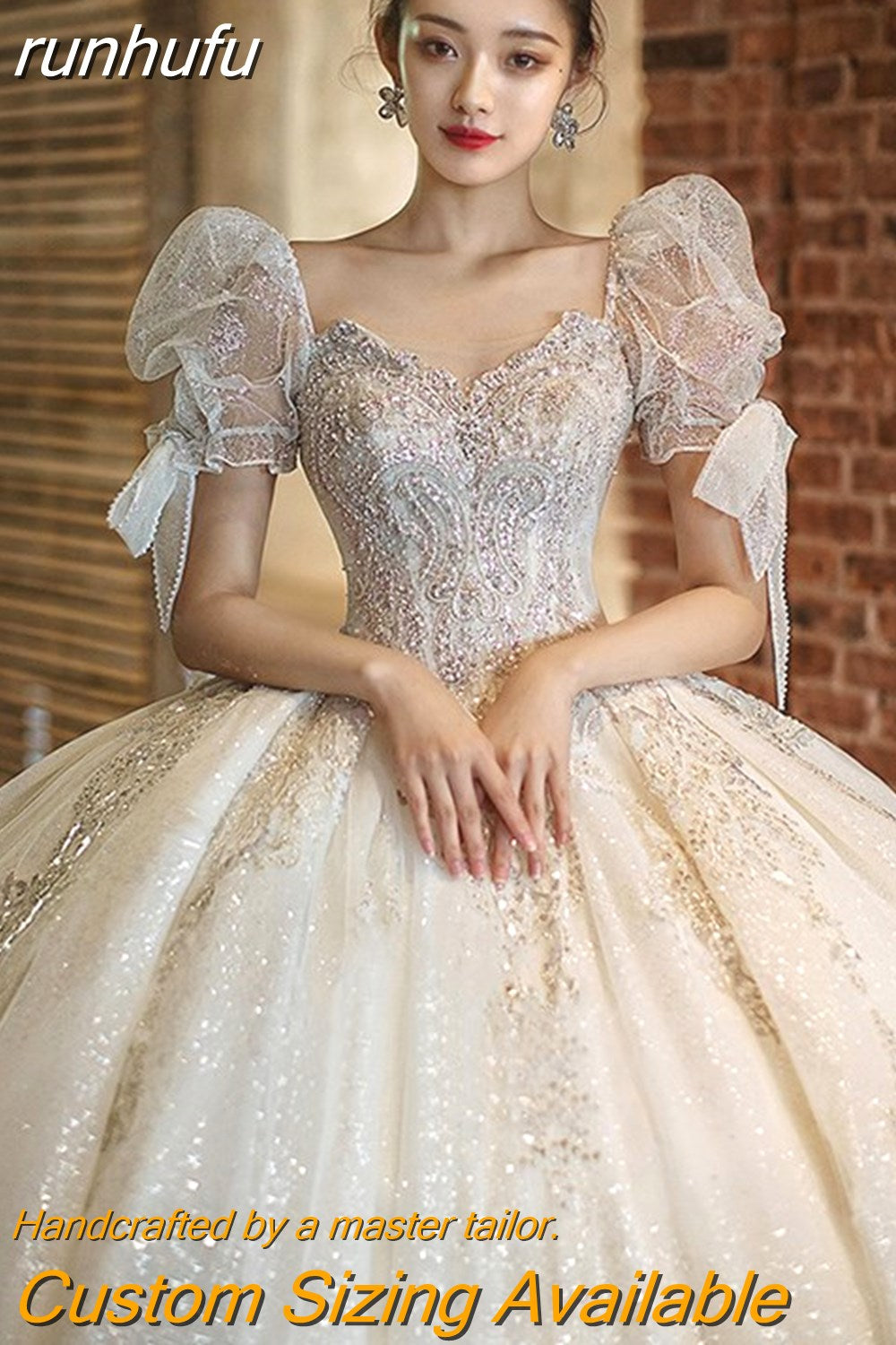 runhufu Wedding Dress 2023 New Short Sleeve Embroidered Tulle Ball Gown Wedding Gowns Shinny Princess