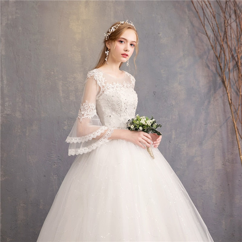 runhufu Wedding Dresses 2023 New Cheap Wedding Dress Full Flare Sleeve Lace Embroidery Princess Vestido De Noiva F