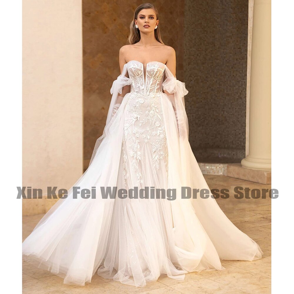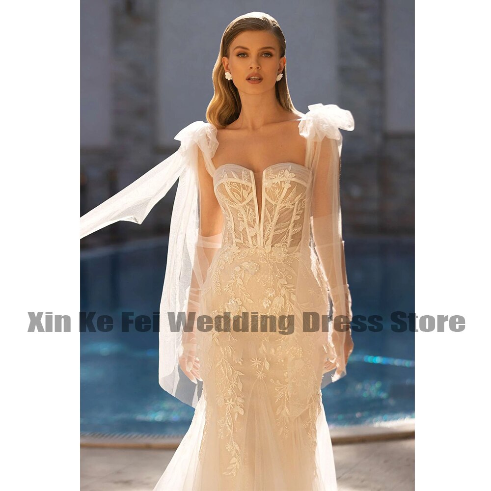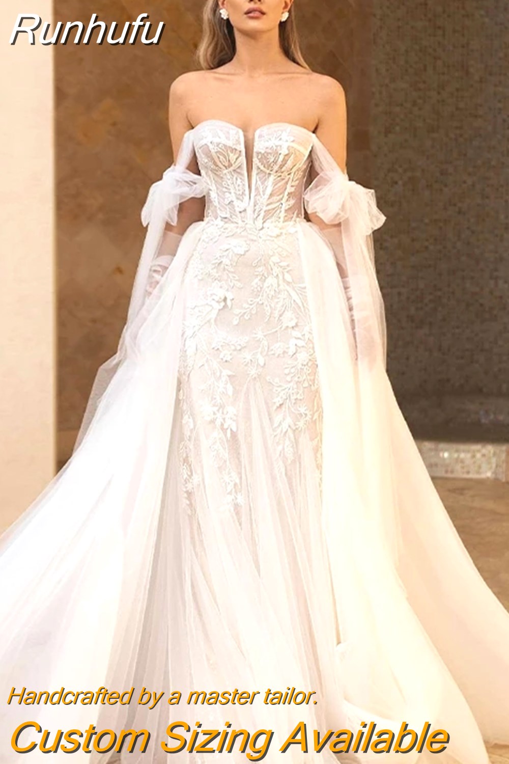 Runhufu Women Sweetheart Wedding Dresses Mermaid Sleeveless Lace Applique Bridal Gowns Bohemian Princess Formal Beach Party Vestido