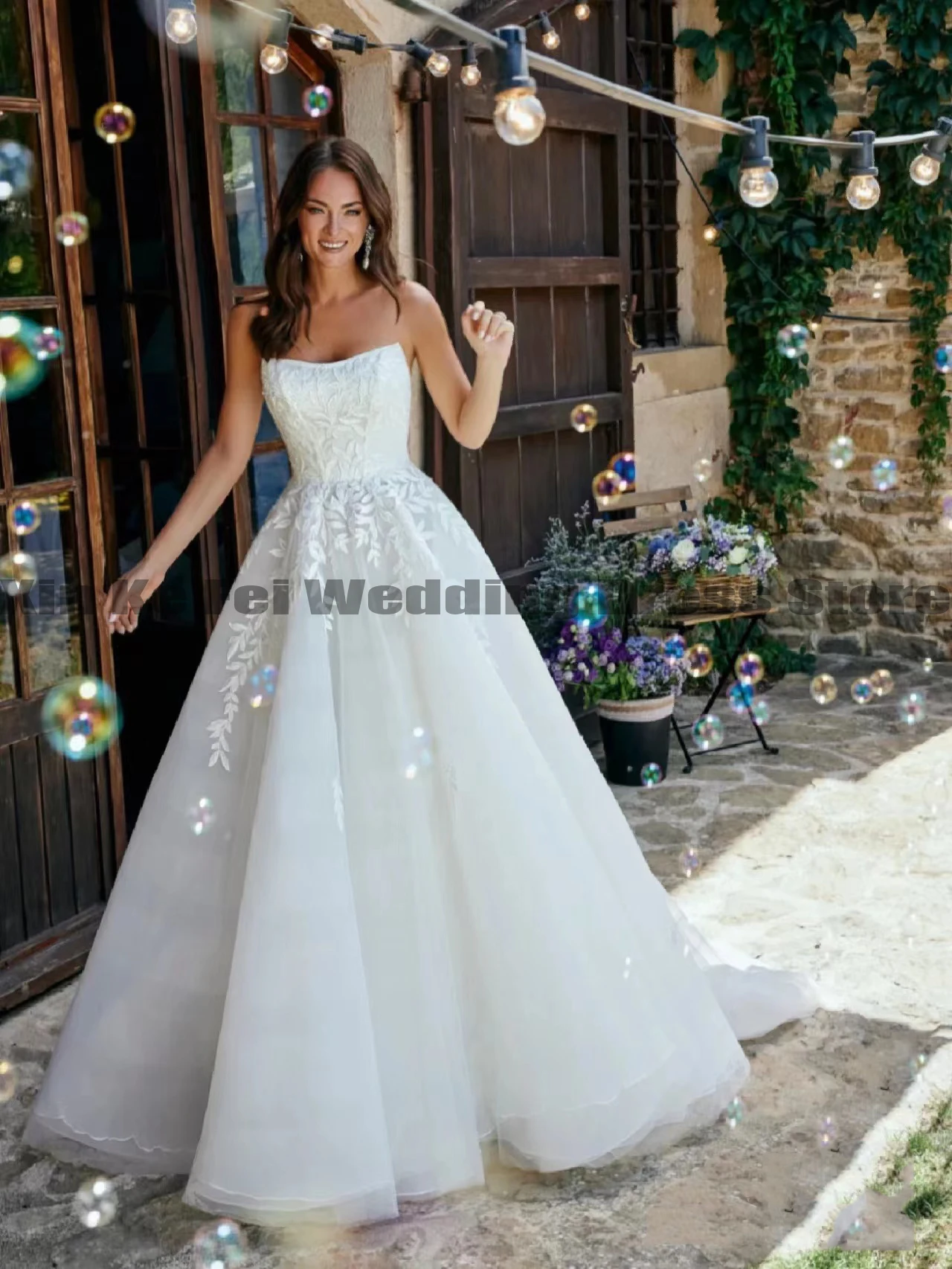 Runhufu Women's Wedding Dresses Sexy Dew White Tulle Decal A-Line Princess Bridal Gowns Plus Size Formal Beach Party платье Robe