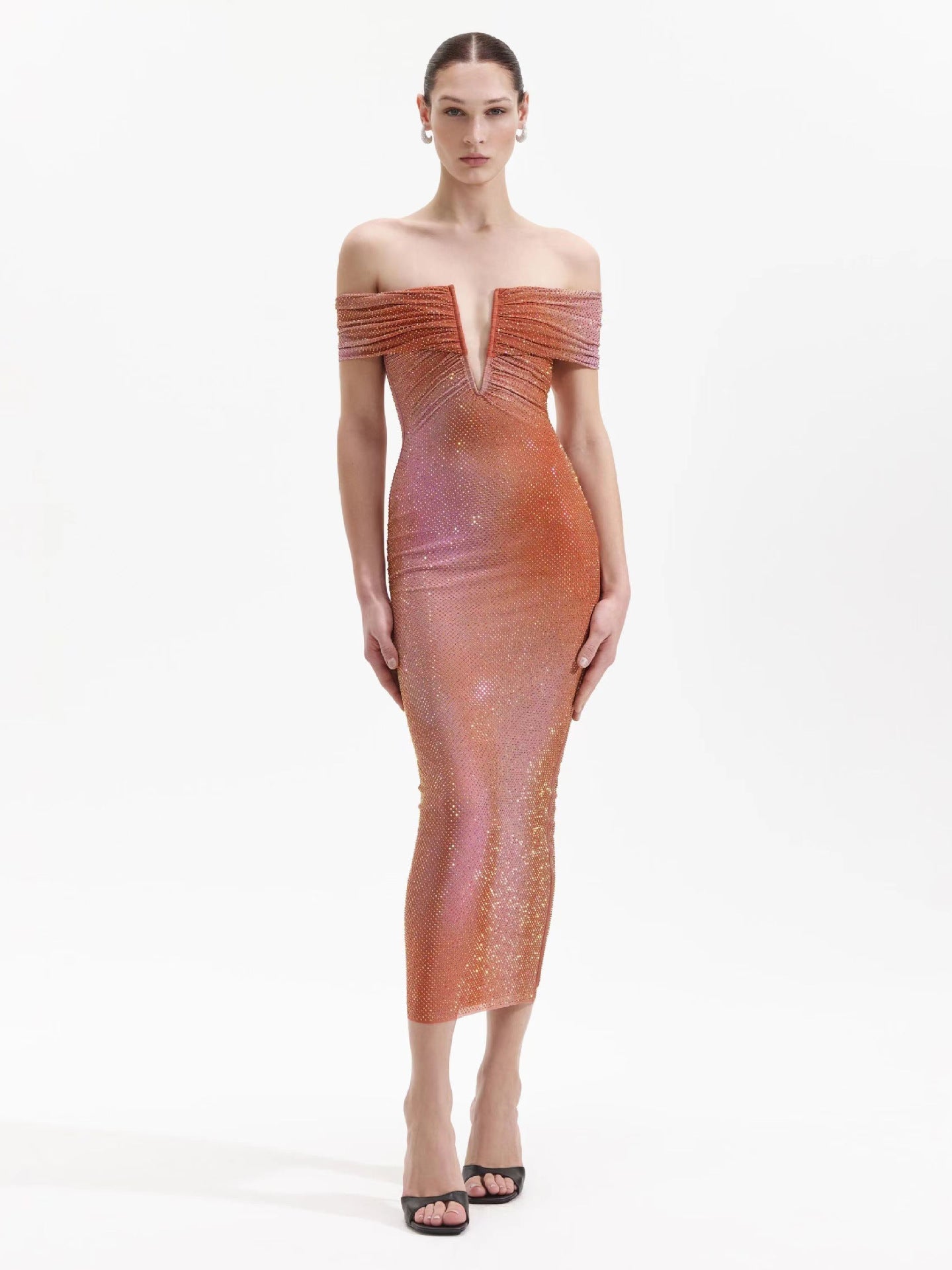 runhufu Fashion Dress Elegant V-Neck Sexy Hot Diamond Into Shoulder Sleeve Banquet Dress Bodyd Women