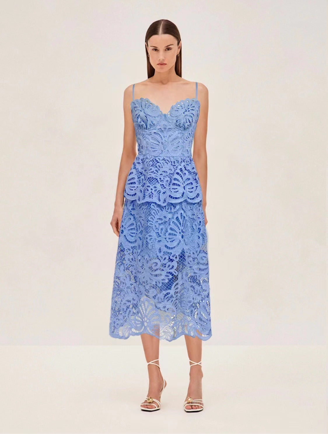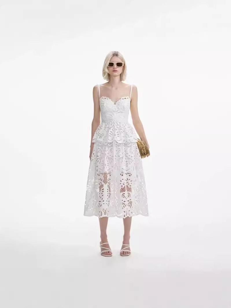runhufu Niche 2024 Summer New Holiday Wind Sling V-Neck Embroidered Embroidery Long Dress Woman