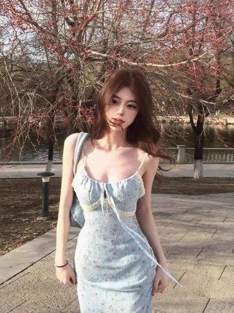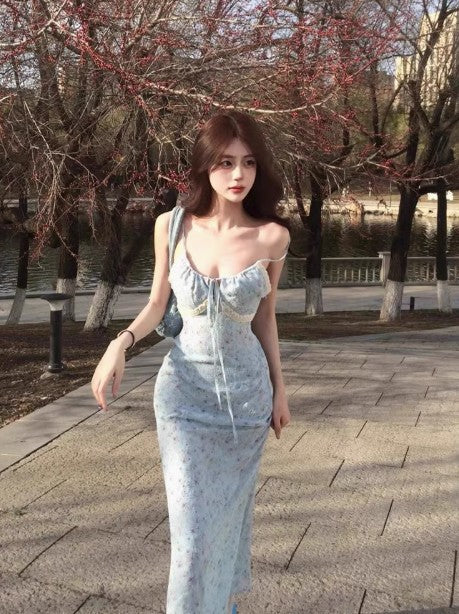 Tea Break French V-neck Floral Sling Dress HZ1108