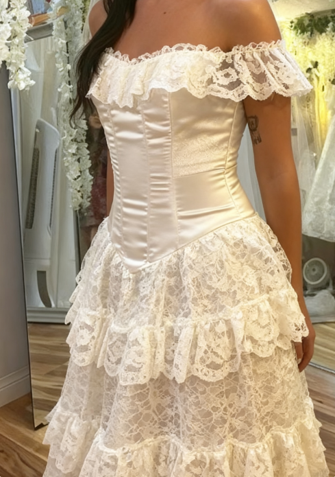 Elegant Ivory Off Shoulder Tulle Lace A-line Wedding Dress HZ1108