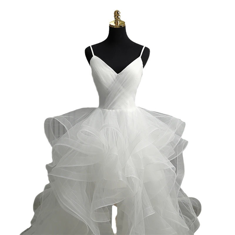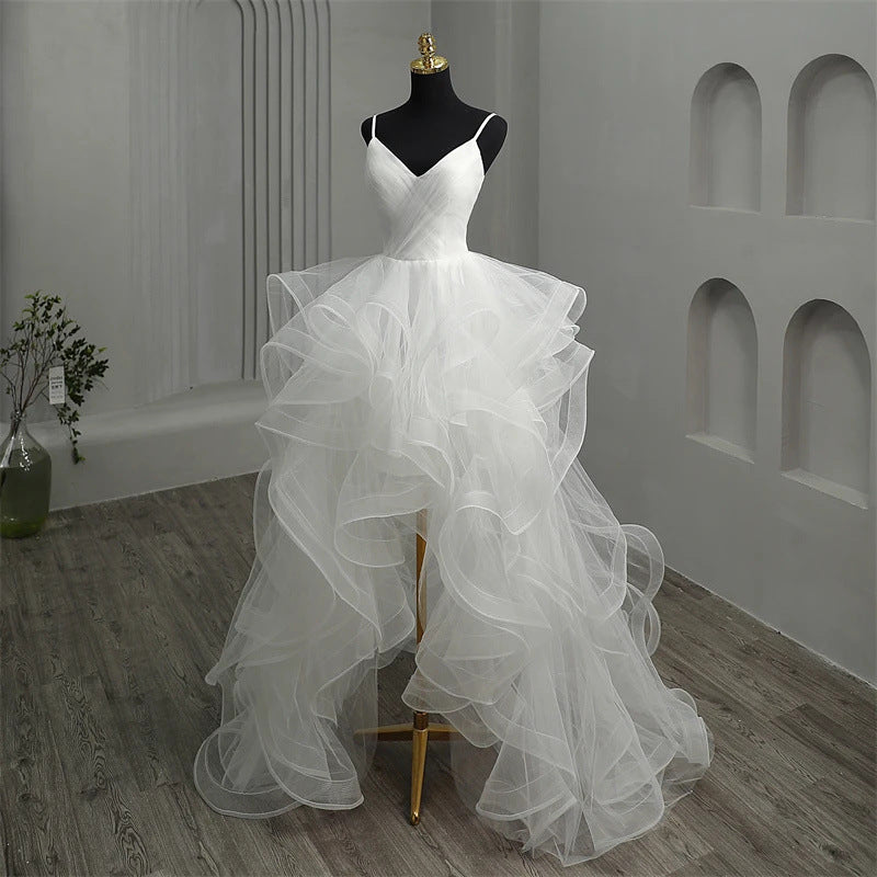 The New Front And Short Long And Light Wedding Bridal Temperament Simple Super Fairy Dream Travel Shoot Out Yarn Depth V Sexy Dress