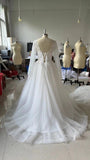 Wedding Dress 2025 Summer Big Tail Sexy Tulle Word Shoulder Bubble Long-Sleeved Wedding Dress
