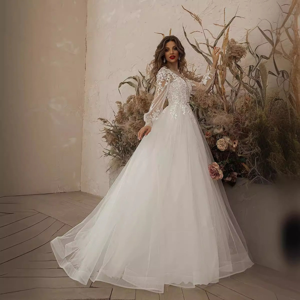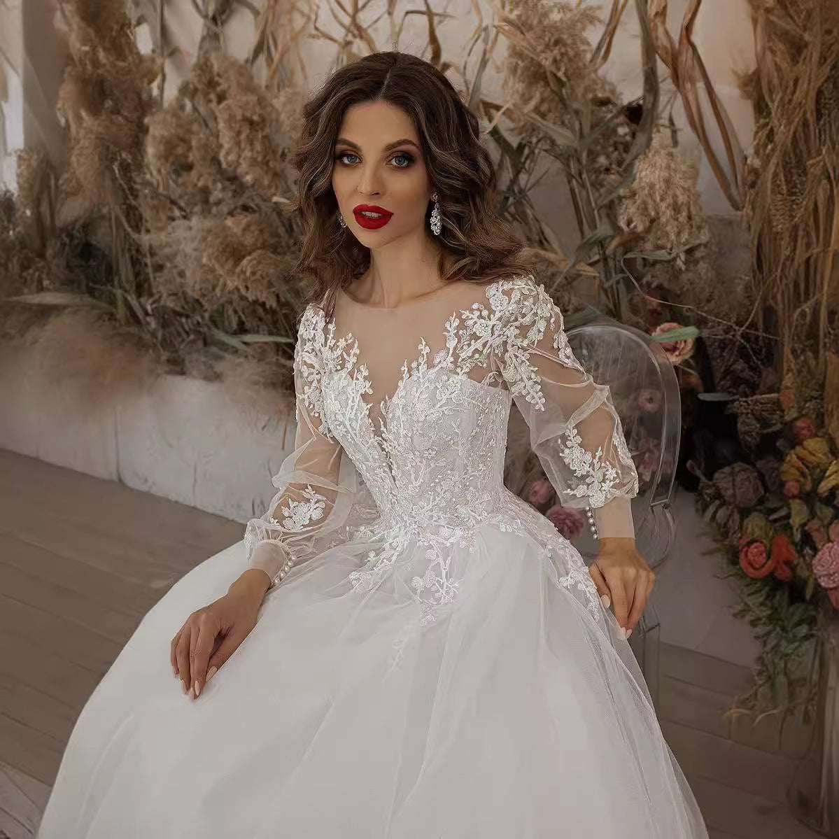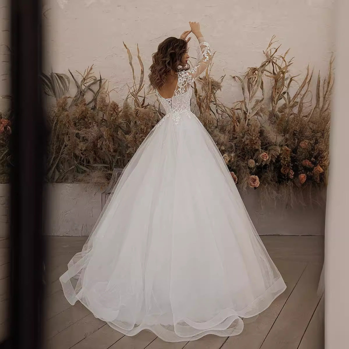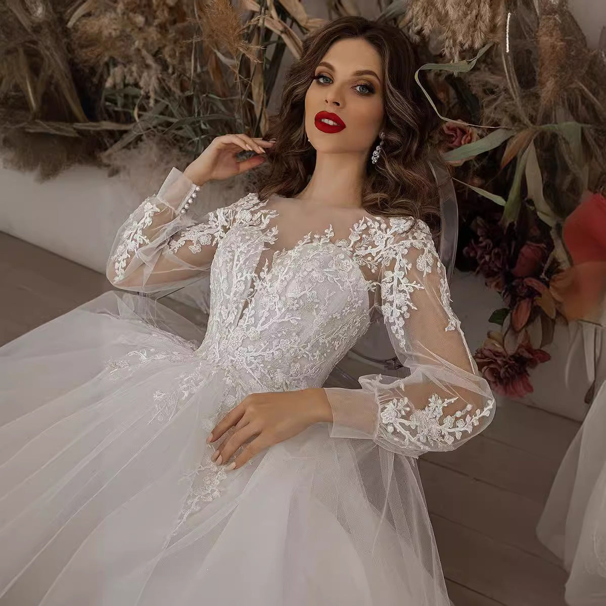 Runhufu Wedding Dress 2023 New Full Sleeve Classic Embroidery Lace Up Ball Gown Princess Wedding Dresses Robe De Mariee
