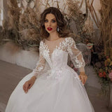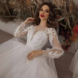 Runhufu White V-Neck Ball Gown Long Sleeves Satin Wedding Dress For Women 2023 Vintage Illusion Back With Button Custom Made