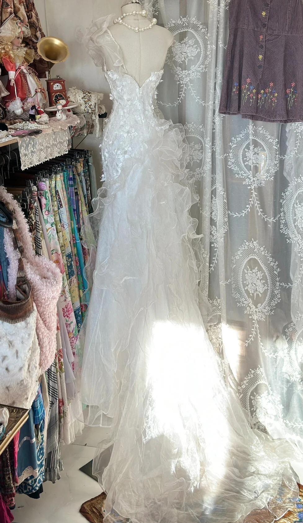Stunning White Strapless Mermaid Organza Long Prom Dress Simple Wedding Dress HZ1108