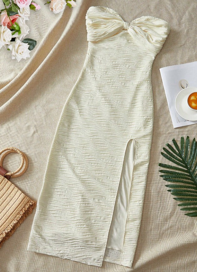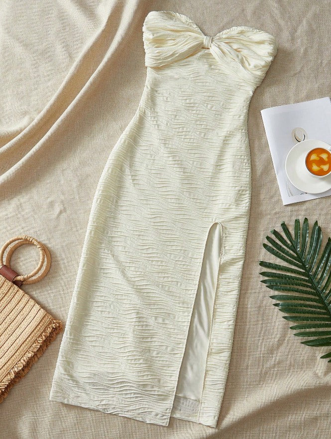 Fashion Sexy Strapless Chiffon Bodycon Party Dress with Slits HZ1108