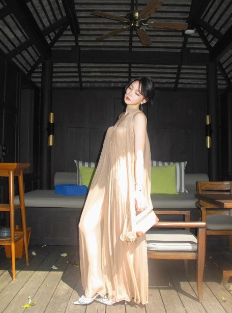 French style mesh ribbon tube top dress backless holiday maxi dress HZ1108