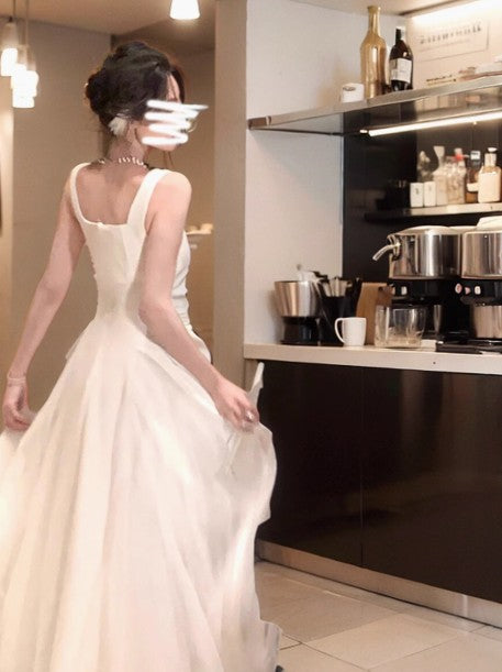 High-grade fluffy mesh white suspender dress HZ1108
