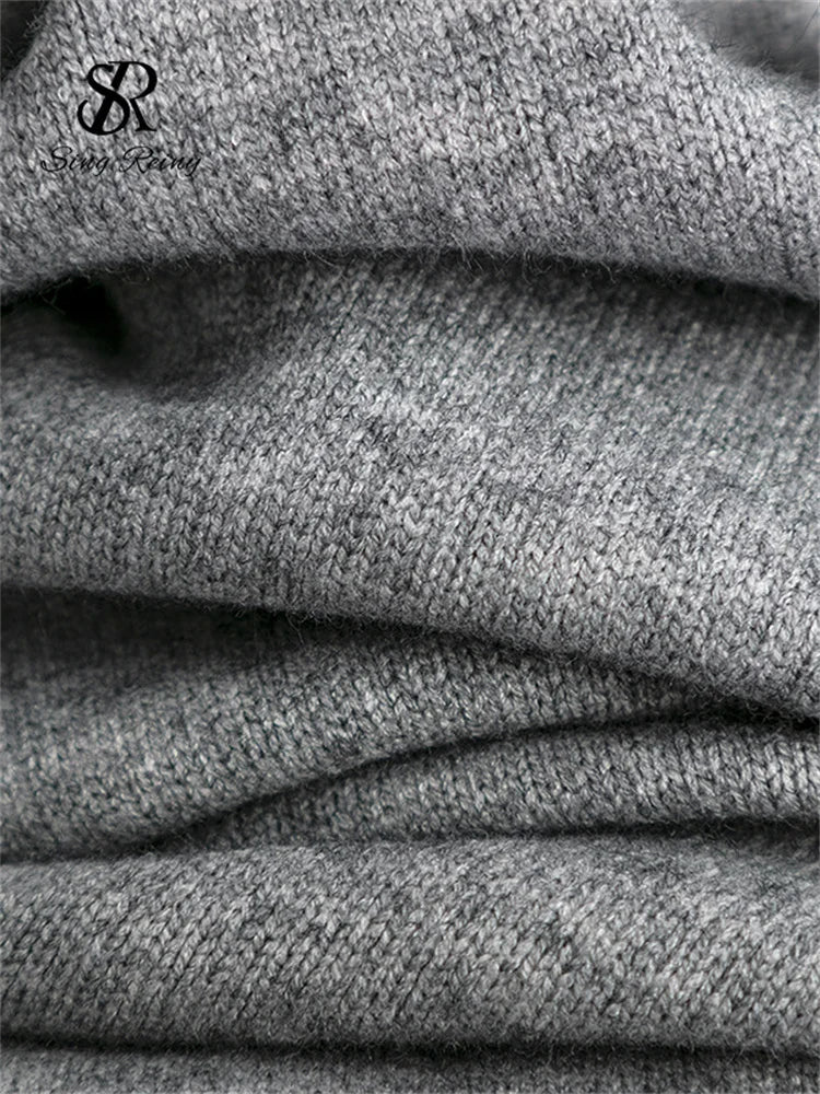 Runhufu 2024 Home Wear Knitted Suits Ladies Turtleneck Loose Long Pullovers+Elastic Knit Pants Casual Sweater Two Pieces Sets
