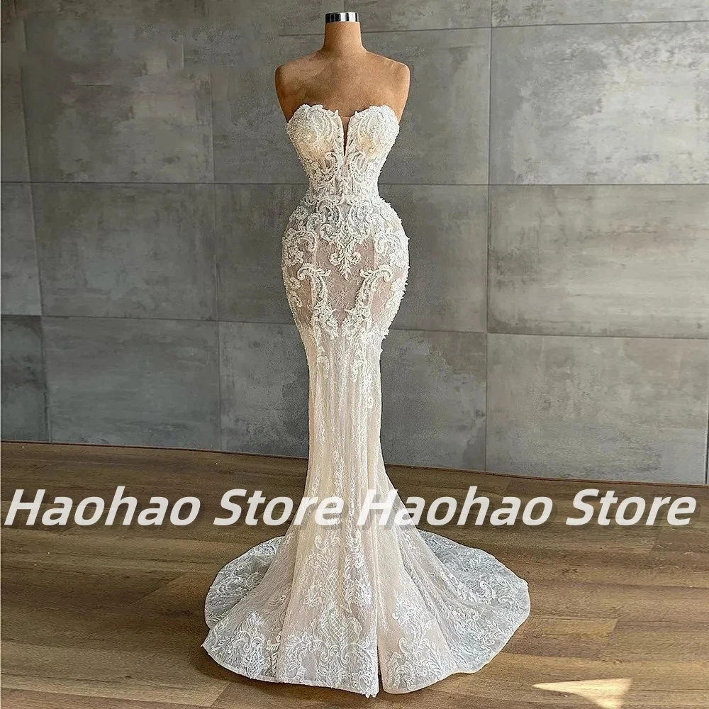 Runhufu 2024 Luxury Wedding Dress Crystals Beaded Bridal Dress Sweetheart Strapless Sleeveless Appliques Wedding Gowns for Bride