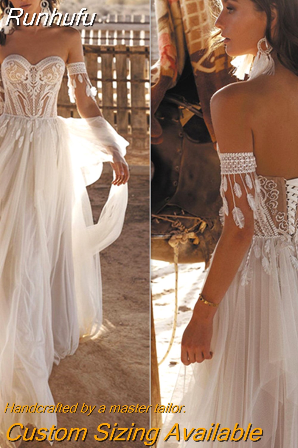 Runhufu Appliqué Tassel Sleeve Wedding Dress For Women 2023 Vintage Sweetheart Backless Vestido De Noiva Custom Made Tulle Gown