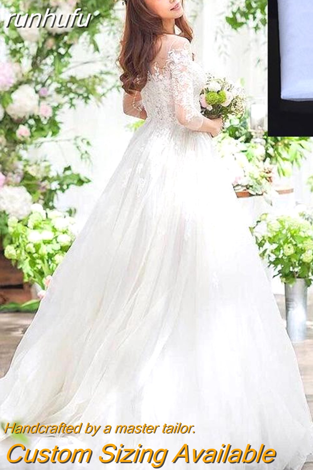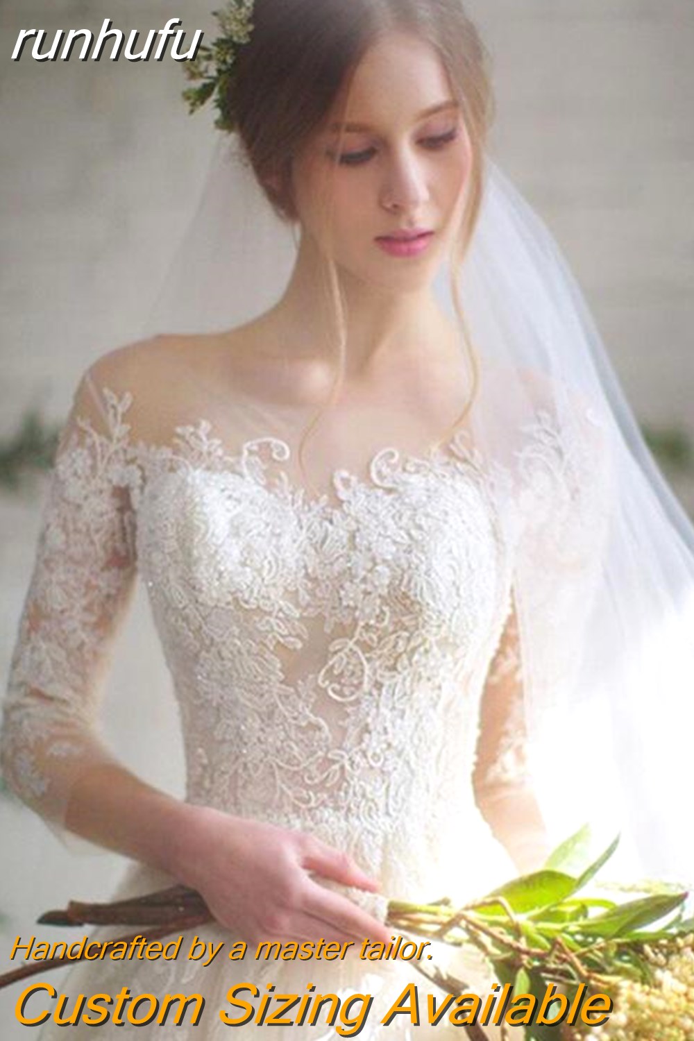 runhufu Arrival Vestido De Noiva 2023 Long Sleeve Wedding Dresses Tulle Lace Bride Dresses Wedding Gowns Vintage Wedding Dresses