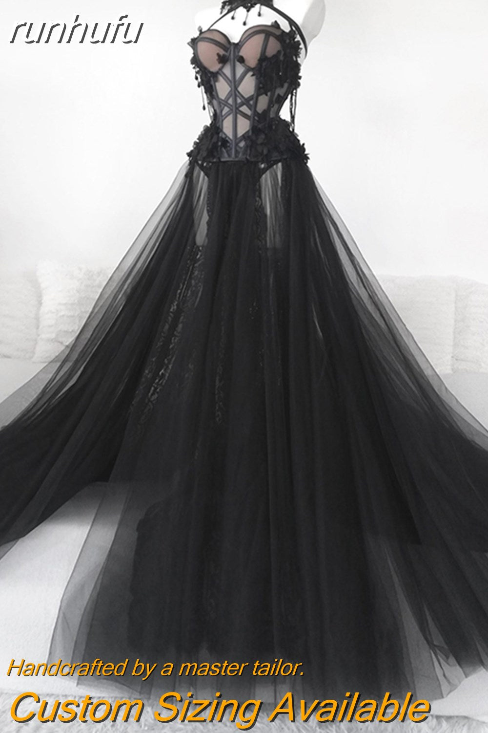 runhufu Black Long Wedding Dress Sexy Bridal Gown Vestidos De Novia Sexy Tulle Wedding Gowns Trouwjurk Plus Size