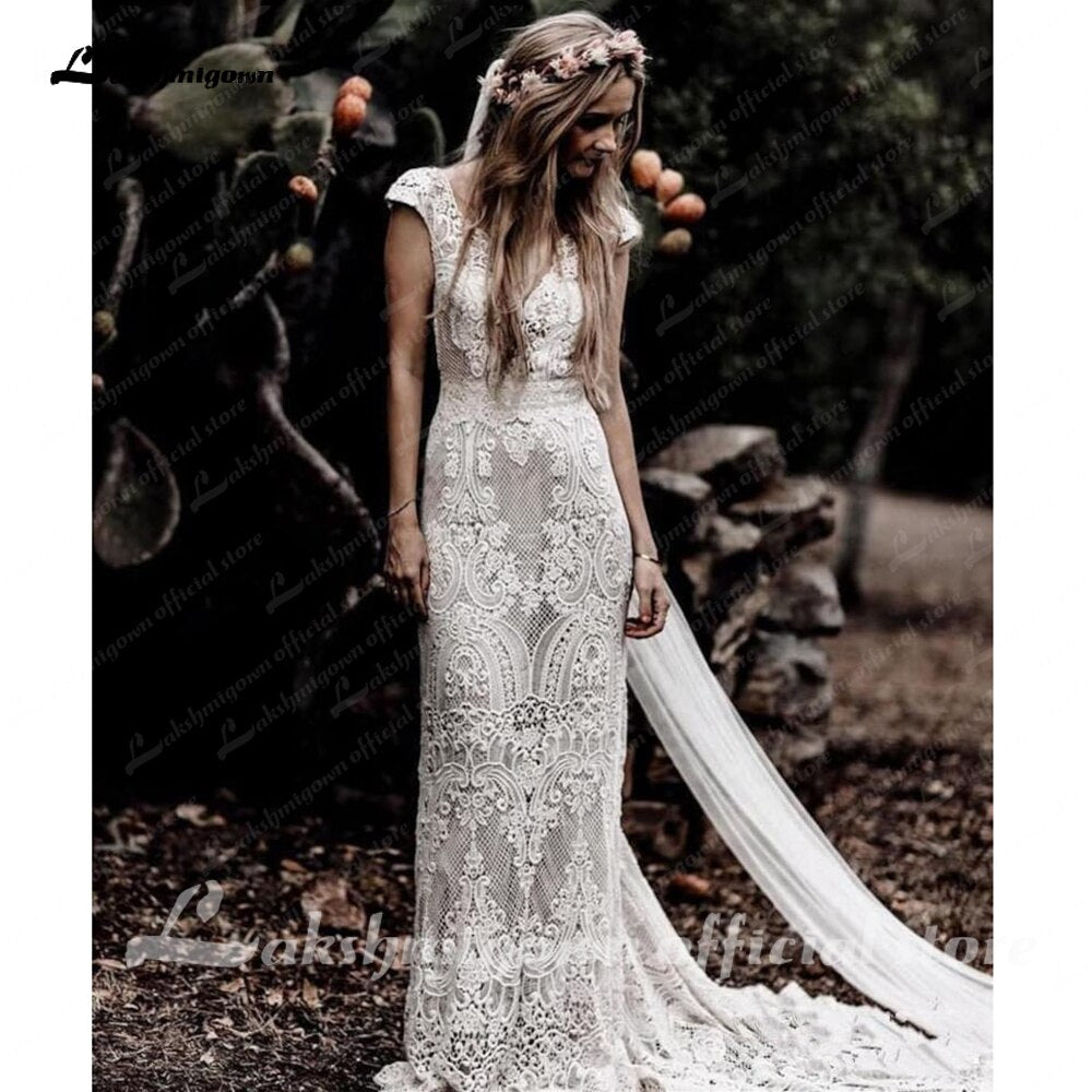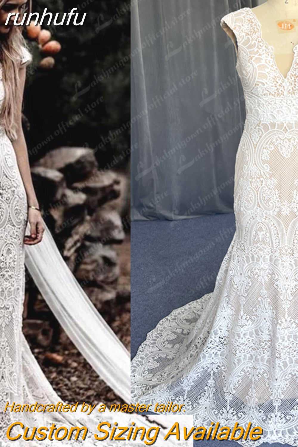 runhufu Boho Lace Behemian Mermaid Wedding Dress Robe Civil Country Bridal Gowns Sexy Backless Lace robe mariage femme