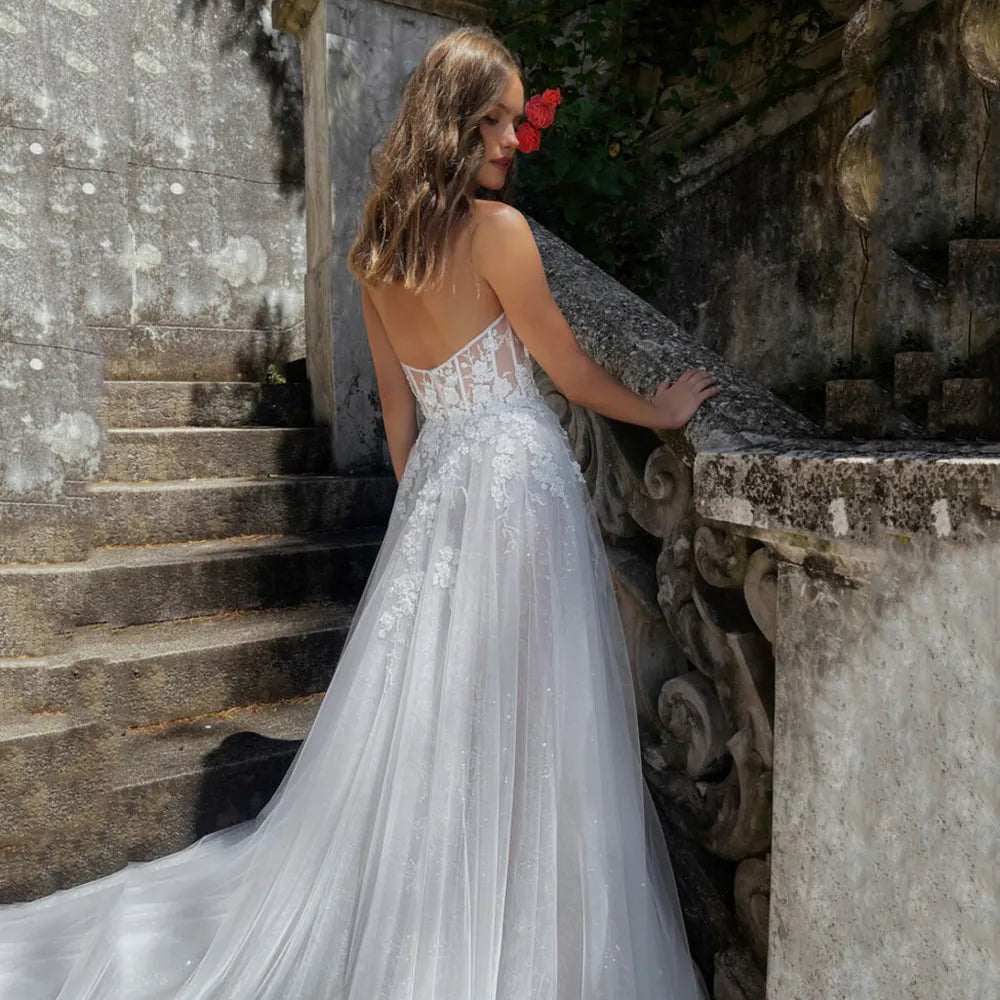 Runhufu Chic A-Line Lace Appliques Beach Wedding Dresses Sweetheart Sleeveless Bridal Gowns Sexy Brides Dress Robes de mariée