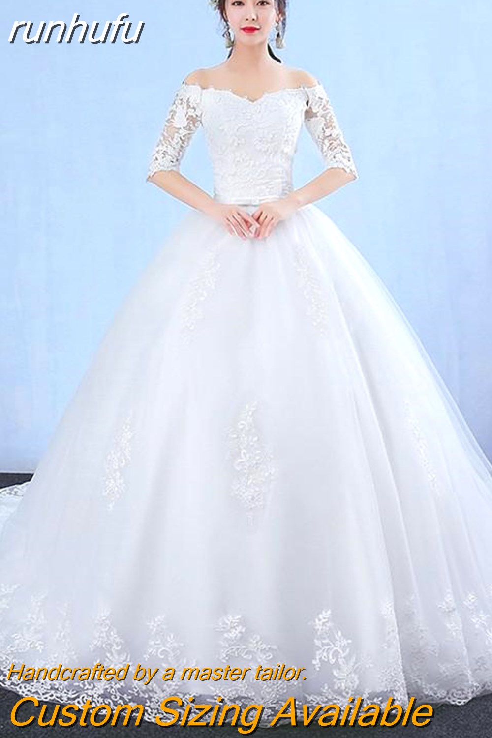 Runhufu Ball Gown Wedding Dress 2023 vestido de noiva Off the Shoulder robe de mariee Lace Appliques Wedding Bridal Gown