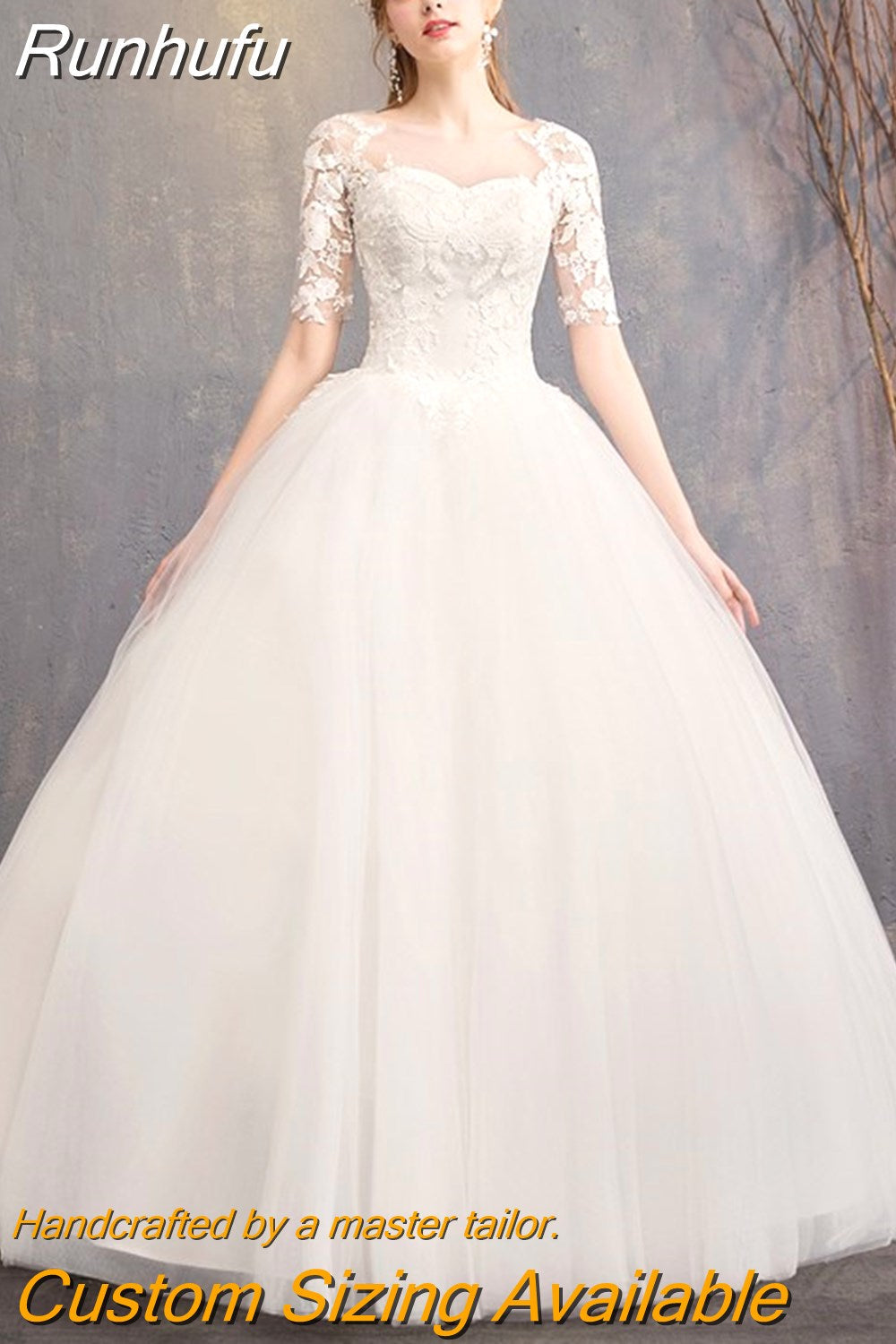 Runhufu Dress 2023 New Cheap Half Cap Sleeve Princess Illusion Wedding Dresses Can Custom Made Vestido De Noiva