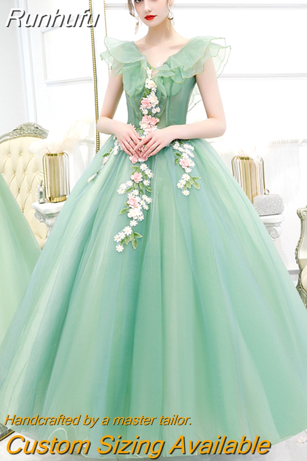 Runhufu Dress 2023 New Elegant V-neck Party Prom Ball Gown Sweet Flower Vintage Quinceanera Dresses Plus Size